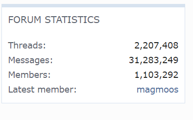 How many of those 1.1M are actually regularly active posters, though? Between those who create accounts and never make a post, those who've been active but since disappeared, etc, I would imagine when you strip it all out those who actually, regularly, post in the forums would probably boil down into hundreds, certainly no more than a few thousand?Fair enough, so food for thought. With a membership population of 1,103,292 that single person represents 0.0001% of the membership (if I did my math right which is always suspect). Seems rather extreme to make wholesale changes that will effect over a million members for 0.0001% For conversation sake, lets say 100 people farm likes, that's 0.01% of the membership - still miniscule