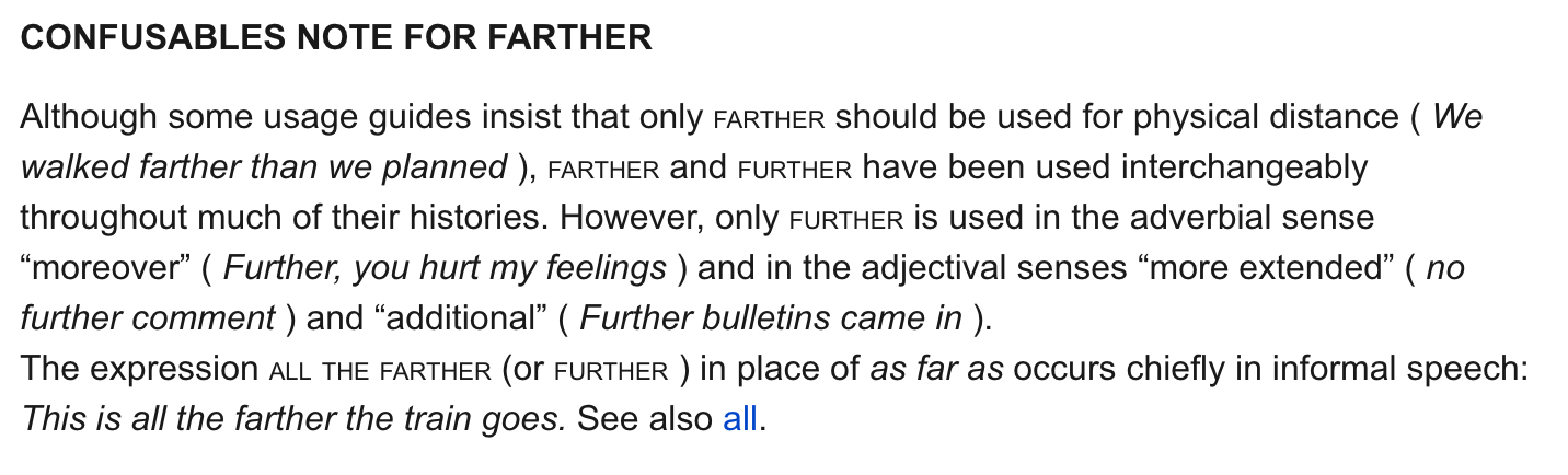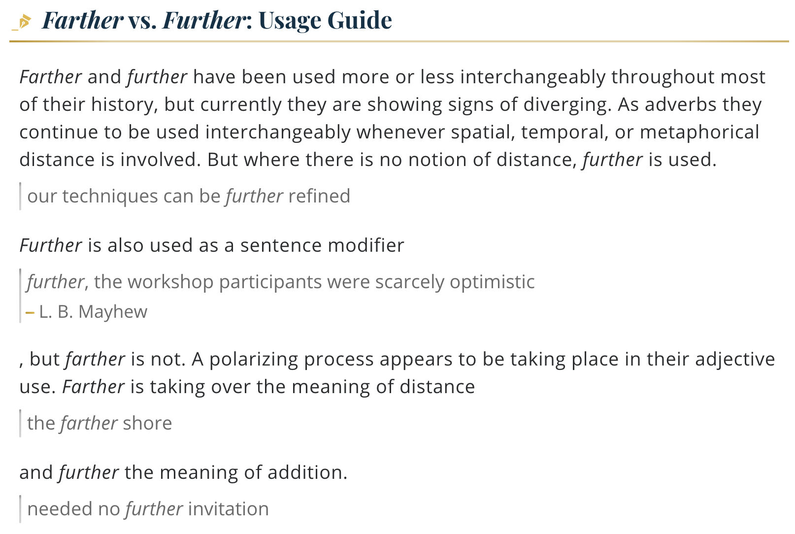 So if not dictionaries, what is your source of authority on usage? You're welcome to be annoyed, but don't tell me I'm "incorrect" when I say, "My new house is further from my office than my old house" because I'm not. And no one is confused by that. Language is not always as black and white as you seem to want it to be.
