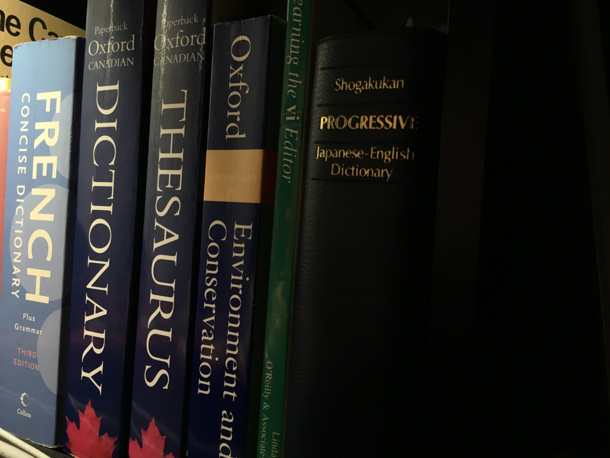 For everyday use at my home office, I keep around the Oxford Canadian Dictionary, the Oxford Canadian Thesaurus, and the Oxford Dictionary of Environment and Conservation (for the work and area of research I do).