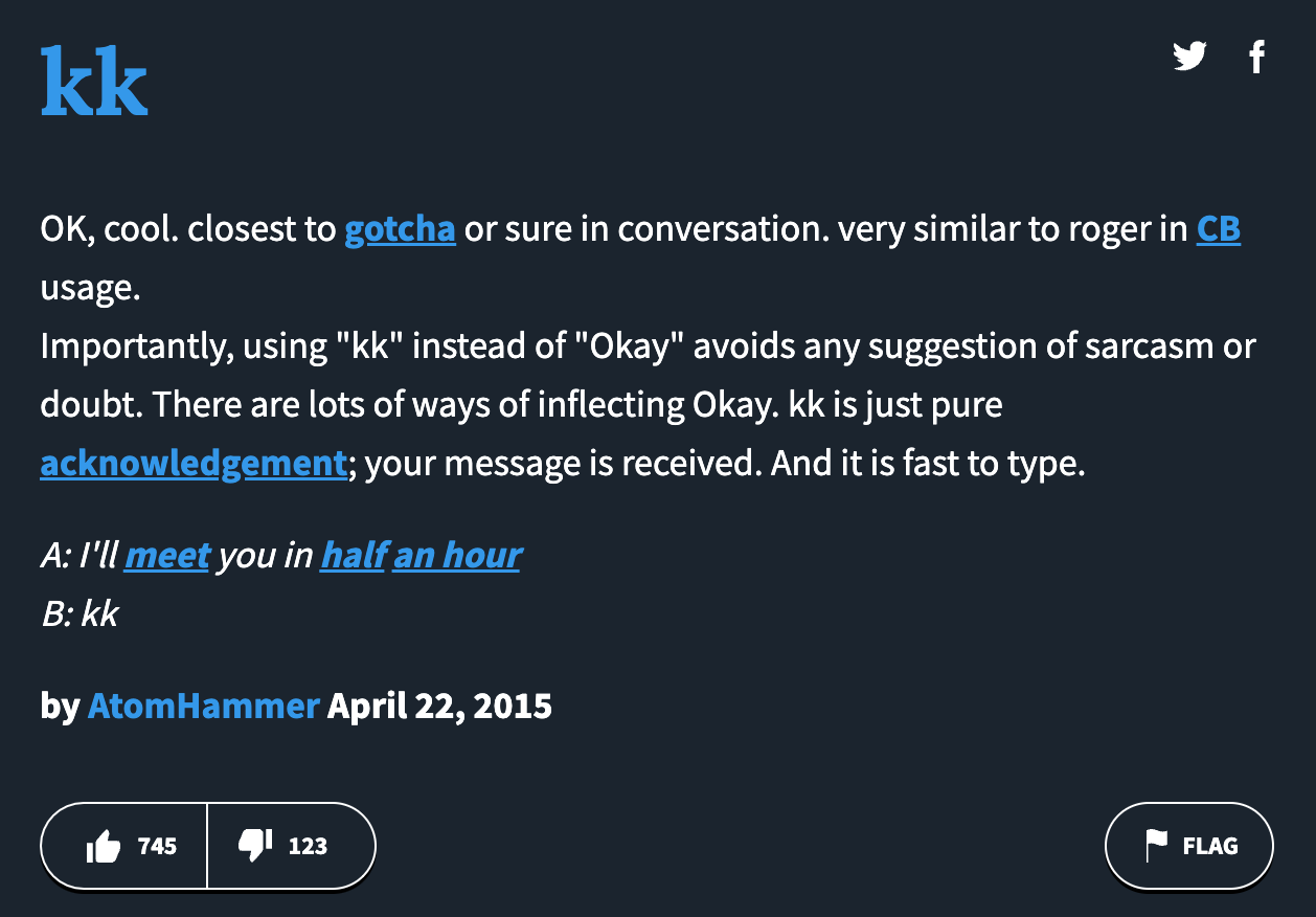 I think Kay Kay meaning OK. We sometimes quickly say K instead of OK when responding to someone.