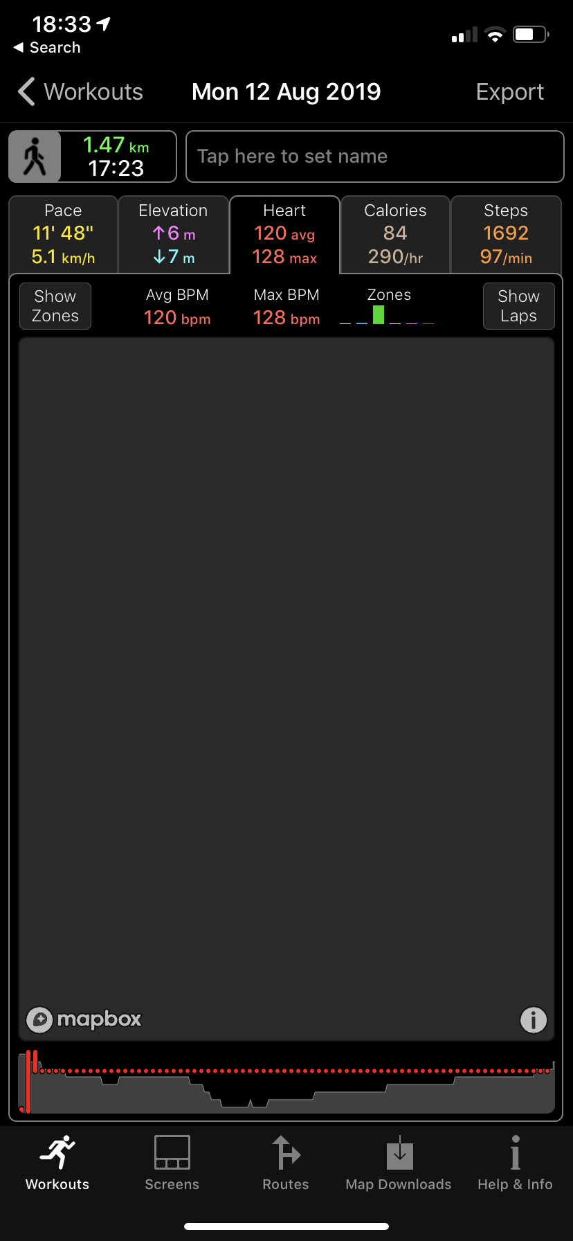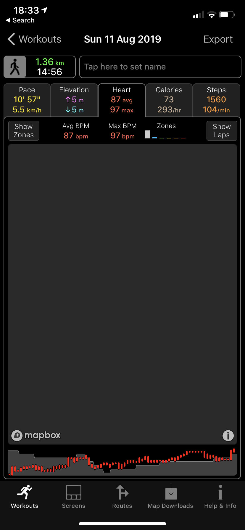 Noticed what must be a beta (iOS, not WOD) bug this morning. I went for a run using WOD and after the run was done, I synced it to Strava. While the workout did take some time, it eventually showed up in the WOD iPhone app, but I noticed when I was looking at stats that the elevation tab was showing zero, even though it synced to Strava with the correct elevation (this is a route I've done many times). When I click on the elevation tab to see if it captured anything, the app on the phone crashes. Anyway, dangers of playing with beta OS's and all that, but just thought you might want to know.