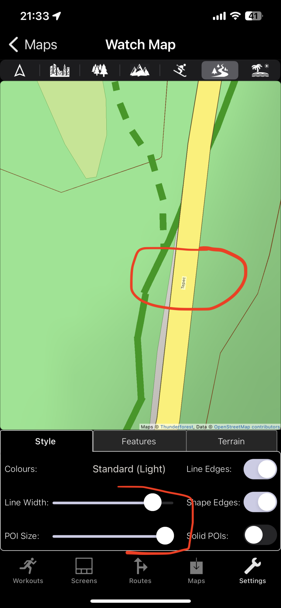 Note that if you tap either POI or road text on the watch map then it will temporarily magnify and also be shown at the bottom of the screen.