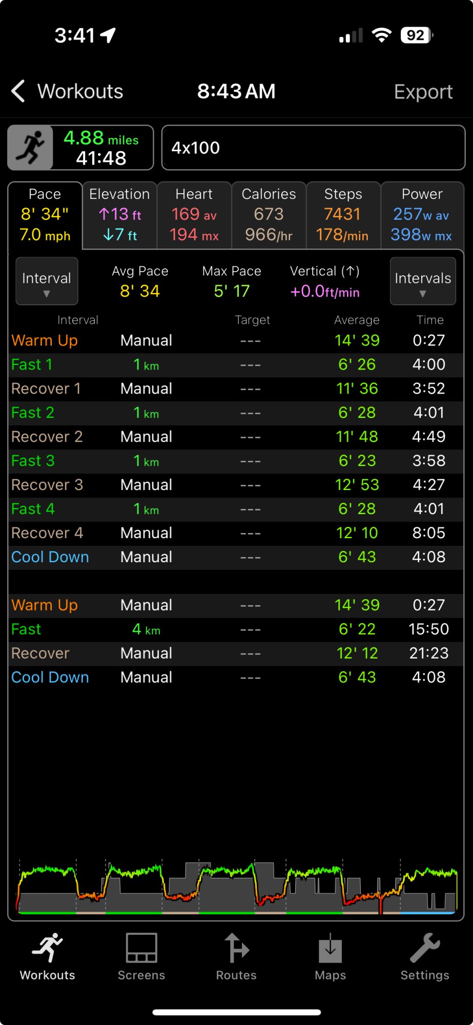 I also decided that it was a good time to add target workouts because that functionality is similar to following a route. And that resulted in 78 new metrics, most of which are probably overkill (I doubt many people will want to compare their average ground contact time with that of a previous workout in real-time).