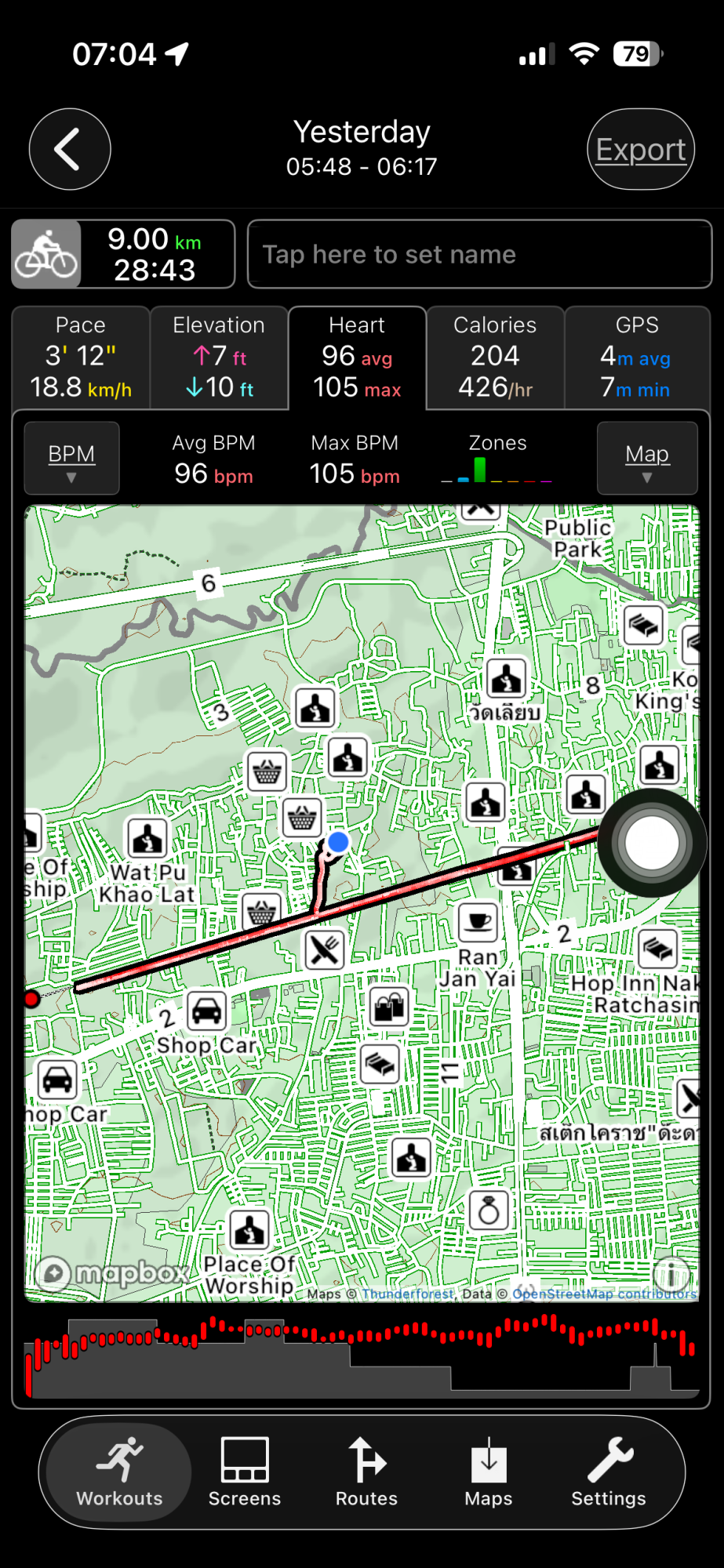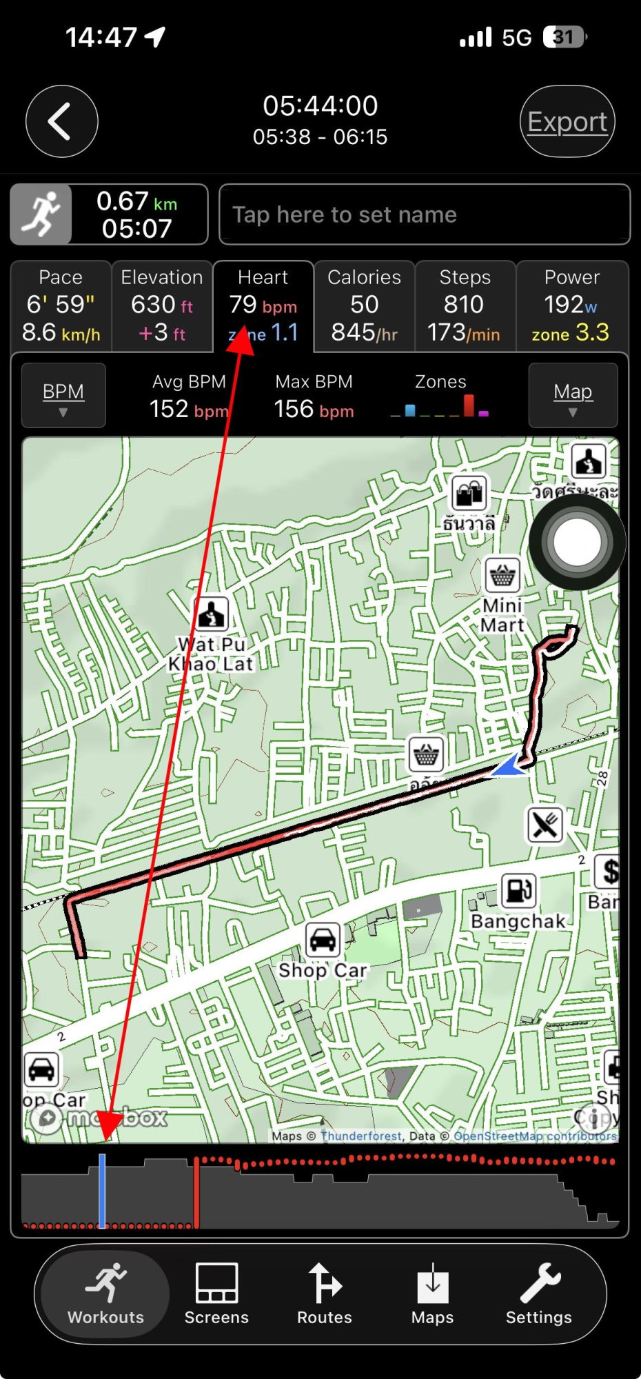I just noticed that the heart rate shown in the small window is bonkers. My normal resting heart in the morning is about 47-55 bpm. But lately the bpm shown on the START screen is in the high 70s. Yesterday it was 79 which I rarely reach unless I'm really active. Anyway, I ignored it and started running. When I later looked at the workout stats I was surprised to see that the 79 bpm continued for the first ten minutes and then suddenly jumped up to a more normal 150+.