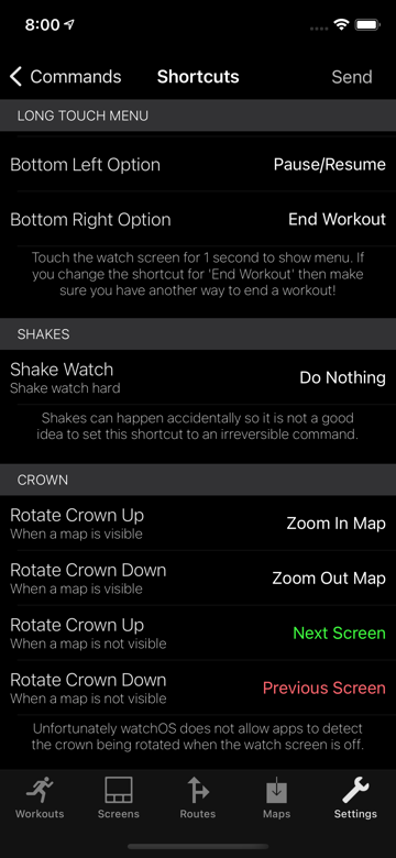 In this screenshot I have changed the commands for rotating the crown when no map is shown to change screens: