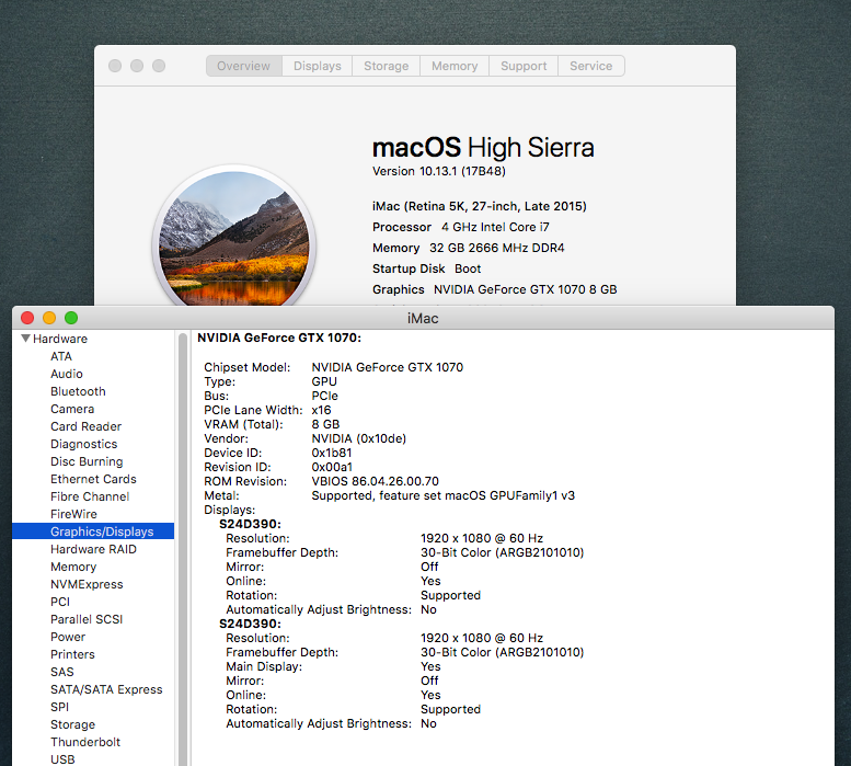 - Nvidia doesn't offer 10 bit output on the Mac.