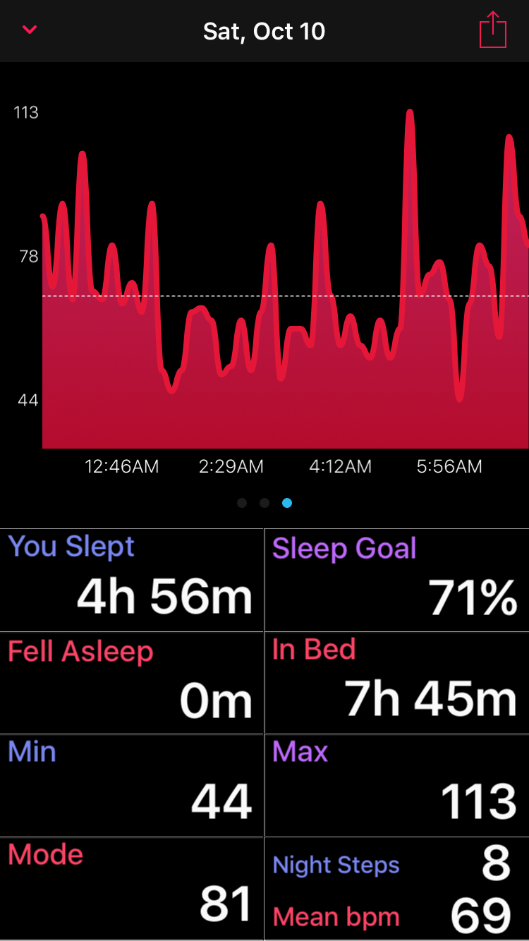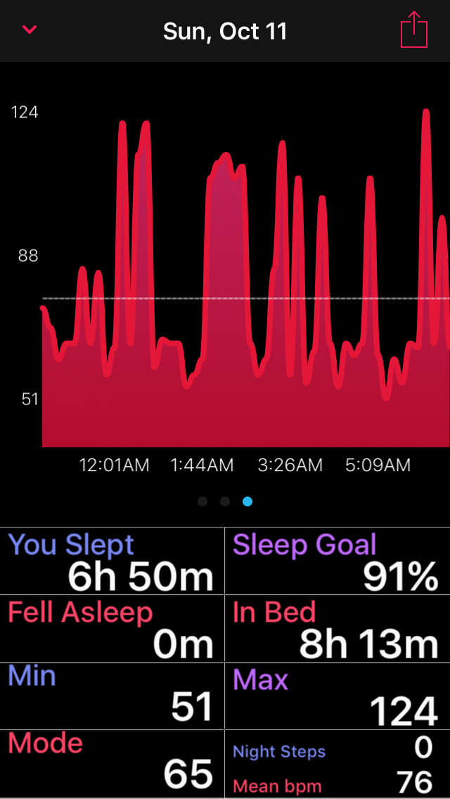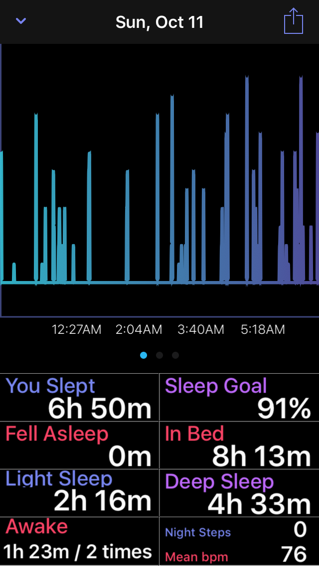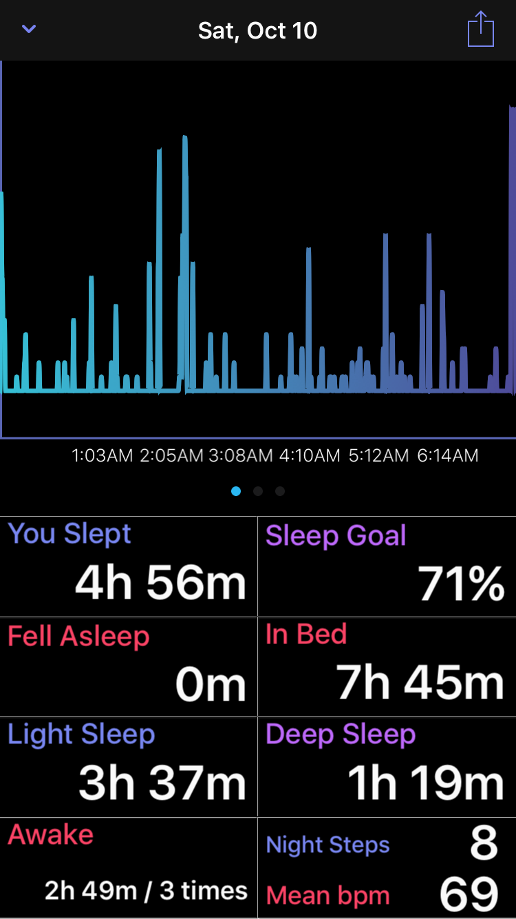 • Sleep Analysis Chart, this new chart takes information from the motion graph and presents it in an easier to read format dividing your sleep stages apart.