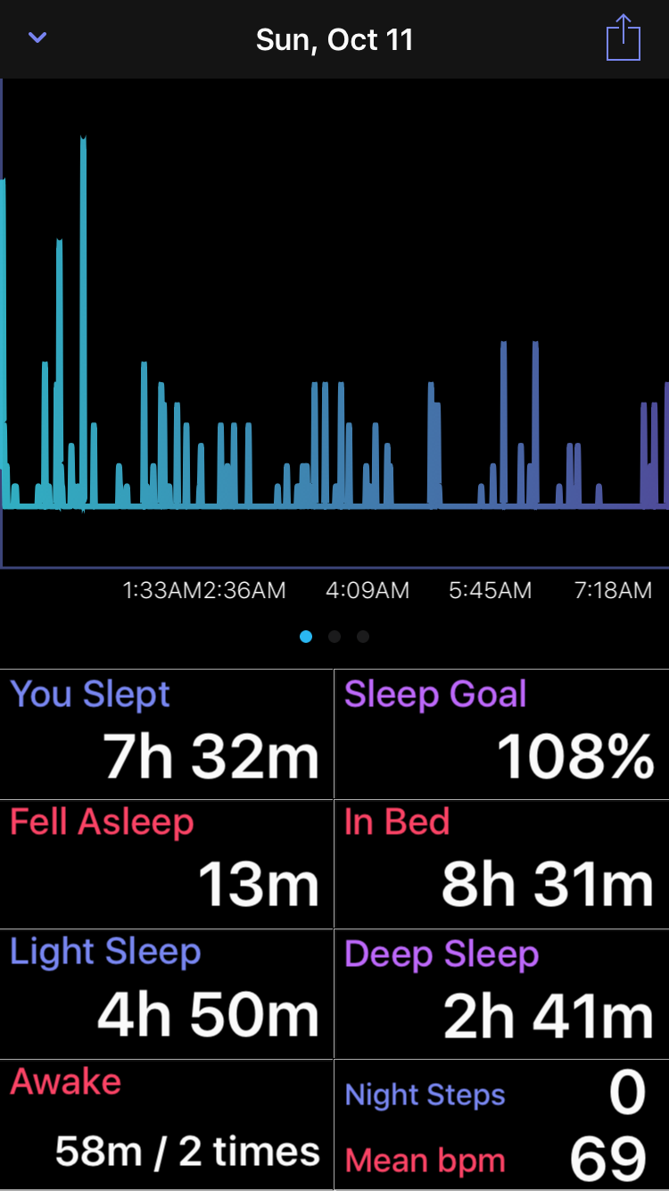 With every update I am working on improving the sleep algorithm — tonight maybe try wearing on your other hand I'd be curious to know if you et different results. Also is anyone else in the bed, I am also curious if another person's movements may affect what the watch reads (the watch is extremely precise).