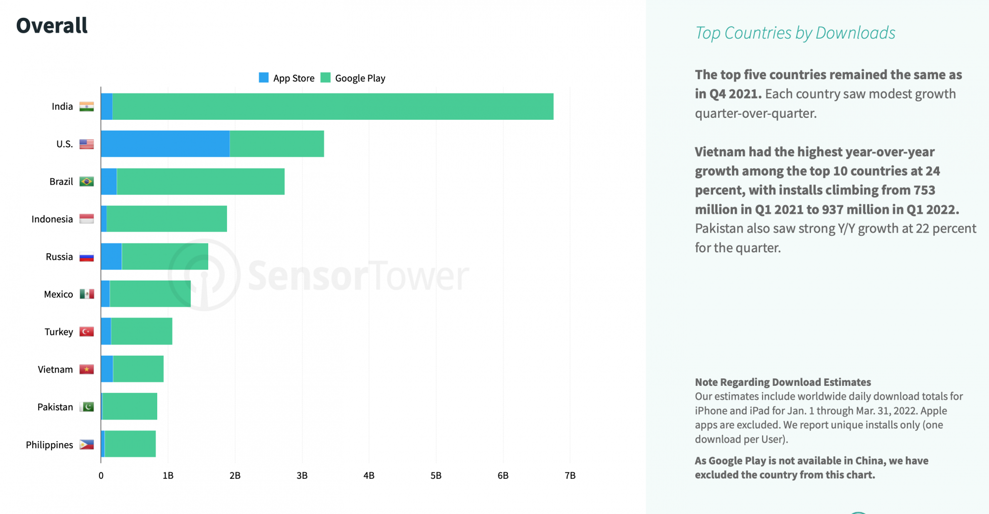 Article Link: Worldwide App Store Downloads Reached 8.6 Billion in Q1 2022