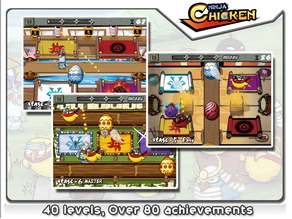 All this finger knotting fun looks and runs like a champ on the iPad. Vibrant colors make it easy to determine what ninja goes where. Each chicken has their own specialized way of warping off the board. Best of all, in all that chaos that is color matching, not a hit of a framerate drop happens.