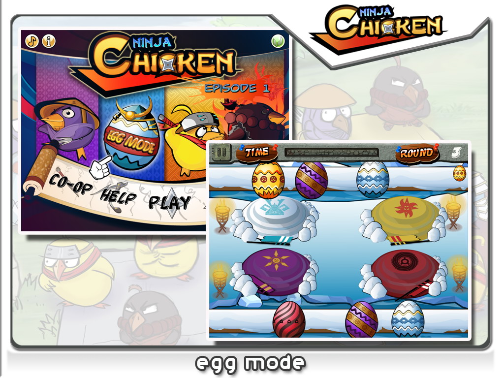 One more mode that just got added in a free patch goes by the name of Egg Mode. This mode drops colored eggs onto the screen. These eggs hatch and it is up to you to quickly get the chickens to their corresponding locations. What makes this hard is that the eggs dont always match the ninjas hidden inside. Egg mode carries on to the other modes as well. Colored eggs will be scattered throughout all your battles in single player, co-op, and versus modes. These eggs can be turned on, or off, as you deem necessary.
