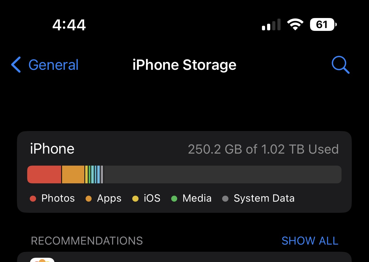Has anyone priced they are using practically all the storage on their iPhone, but you aren’t? Apparently I’m using 509.8GB of 512GB, but I know this is completely wrong, anyone else have this?