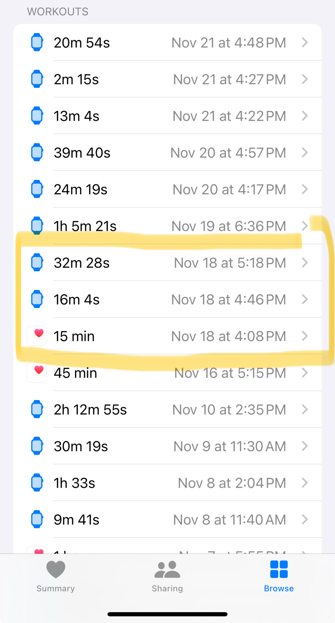 Last week I forgot to set in my Watch the start of a workout, so I add it later manually. It was a simple one, from 5:45 to 6:15. Problem was that I set AM for the start and PM for the end, so I have more than 11 hours of workout...