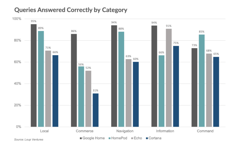 The only one Google has a large lead is Commerce, where everyone except Google struggled. Siri is not great with information, but not awful.