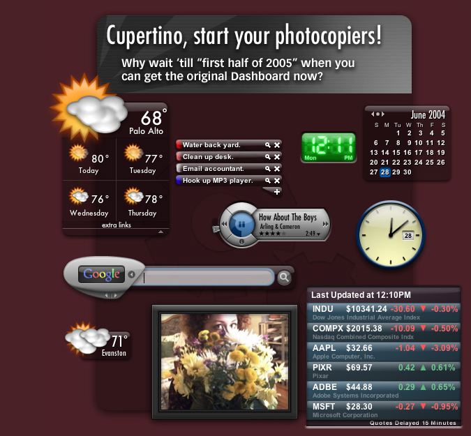 Widgets. WOW...I wouldn't have to download Konfabulator when I shell 120 bucks for Tiger.