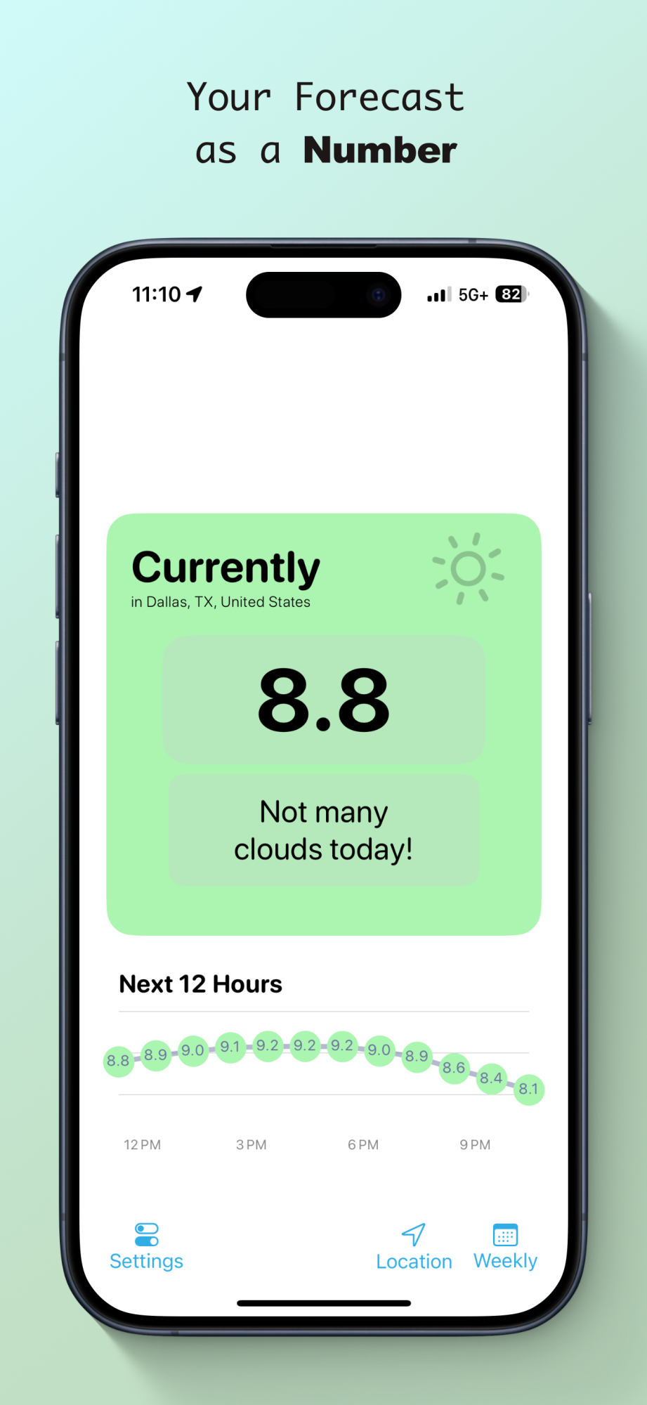 Hello everyone! I recently launched my (hopefully unique) spin on the crowded world of weather apps. Rather than create a traditional style app where the weather data is presented front and center, WxNmbr uses a custom algorithm to score the forecast out of 10.