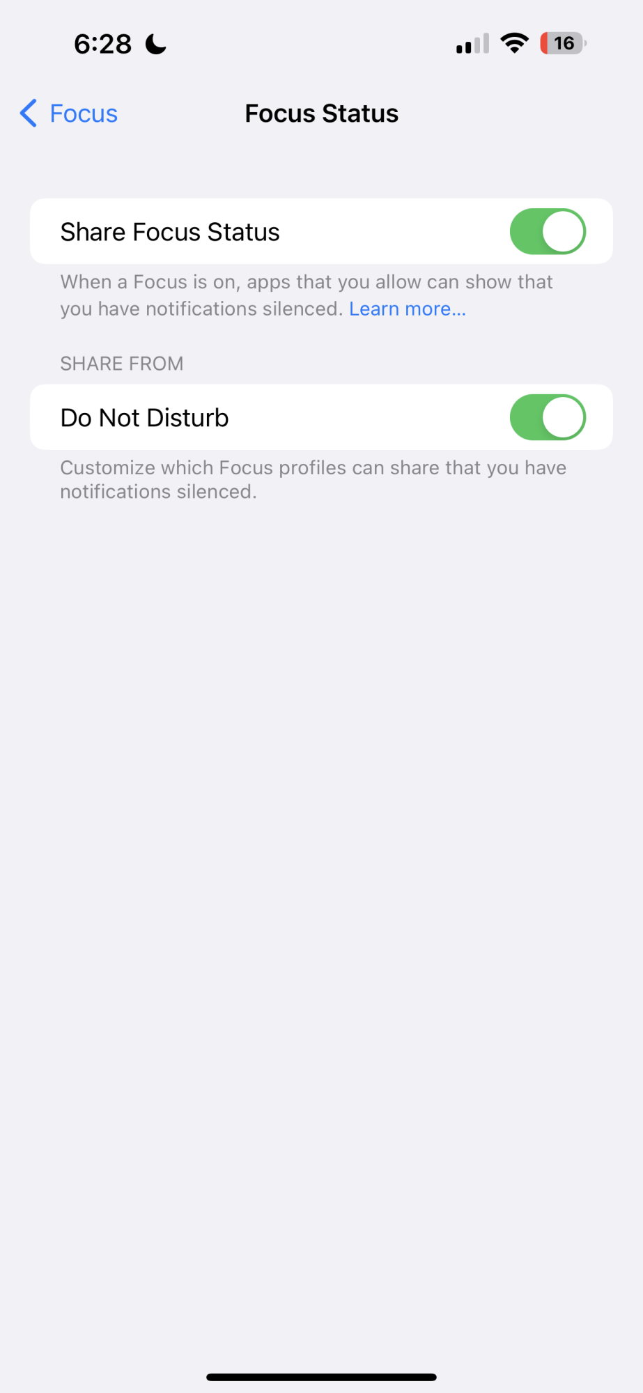 EDIT: I have the "Share Focus Status" on the conversation turned on.
