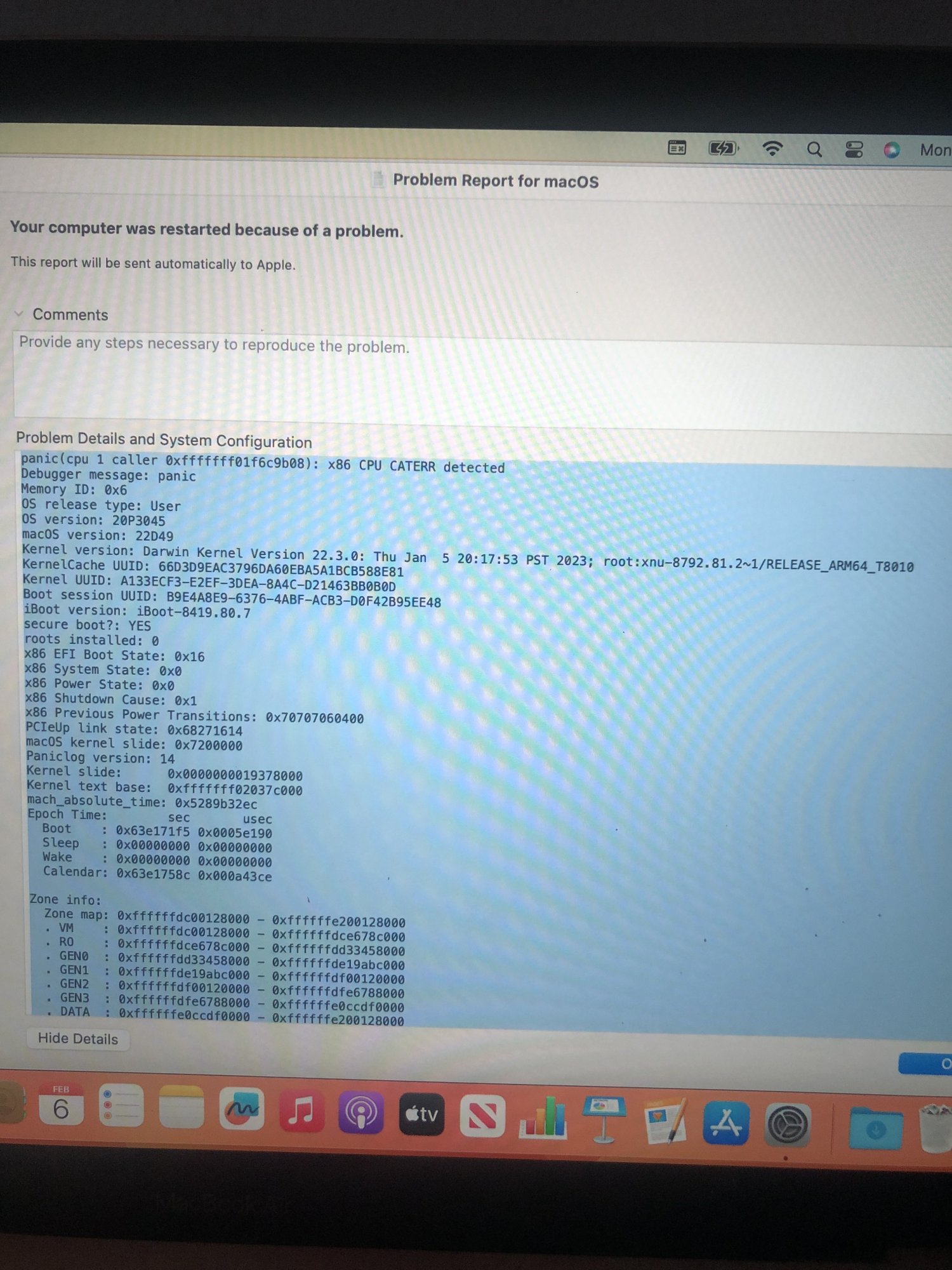 I did a quick search, and found that CATERR stands for Intel Catastrophic Error, something not related to software. It could be related to peripherals, but the MBP wasn’t connected to any external monitors or docks at the time, only my iPhone (and the power adapter).