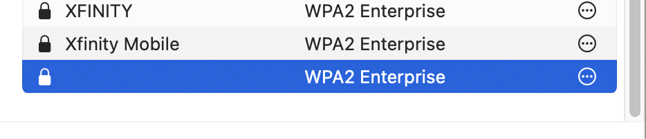 Long story short. I've been a Comcast/Xfinity subscriber for years. Until recently, I was able to connect to their secure Wifi hotspots, justifiably avoiding unsecure public wifi. Recently, I can no longer connect to any Xfinity networks outside of my home Wifi. I dare not talk to the black hole of uselessness of Comcast support. I don't think it's a Mac problem, although I have not been able to connect using my iPhone either. Here's my question... when I go into the Wifi settings on my Mac, scroll to the bottom, and click on the Advanced tab, this screenshot is what I get. What is this?