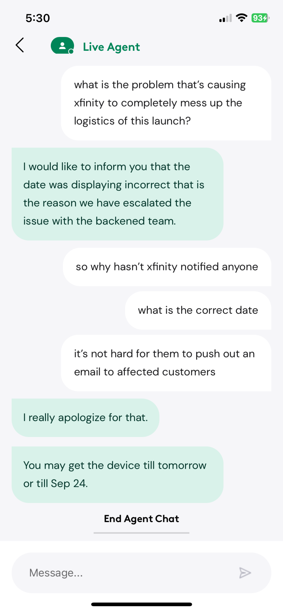 And true to their word-ish. 4:06 pm the new phone arrived!Got off the phone with Xfinity and they promised it would be here by 2:00 pm today. I told them it was 3:20 pm already. They said, oh 2:00 pm MT. 4:00 pm EST. They PROMISED it would be here by then. Pinky swear. 25 minutes to go. lol.