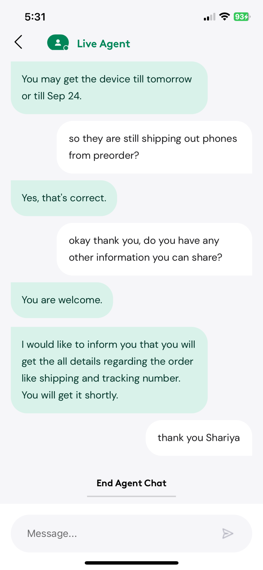 If that’s true only 15 minutes here to go in central time.3:26 central time and received new phone and watch!