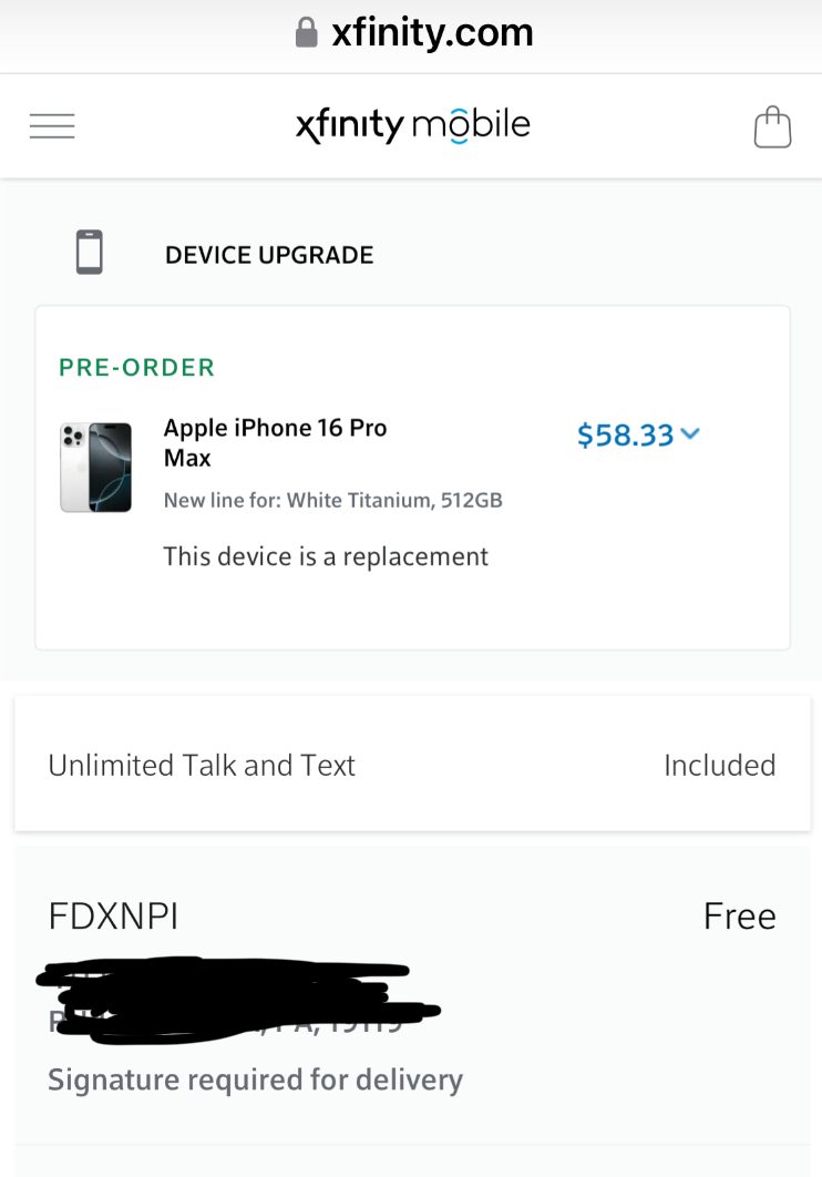 What promo did you get?I recently received a free upgrade for paying off half the iPhone 15 pro max (I received launch day last year) so I went on Xfinity website and applied the upgrade to the 16 pro max White titanium at 512Gb this morning at opening. I was constantly running out of space with the 256. I applied the upgrade online, and got confirmation it’s been placed but they needed me to verify info. I called them to speed the process up. Everything was ordered and verified in 25-30 minutes 7 o’clock CT. On track to receive 20th! Good luck guys! She told me I’d receive the phone in 1-2 business days but I think she misspoke. No way I’d get it that fast. If I do, I’ll report back. 😄