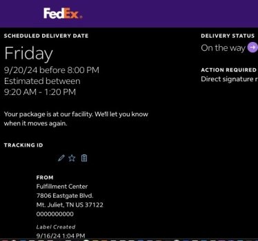 That's good news! I think I am screwed, then. LOL! It's okay. I know I have to be more patient.My mom's iPhone 16 Plus in teal had a label created on Monday on FedEx. Due to be delivered on Friday outside of Philly - coming from Mt. Juliet, TN.