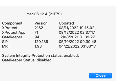 Speaking of XProtect and Malware protection, I highly recommend people download and install the app "Silent Knight" It is a great app and helps you to know if you have the latest updates for XProtect and how your other MacOS protections are doing as well.Exactly