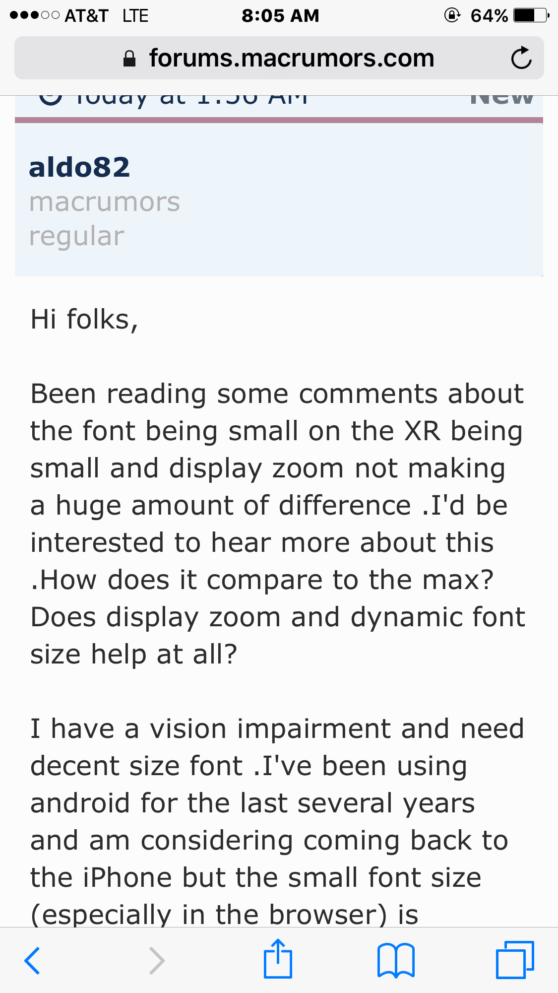 Been reading some comments about the font being small on the XR being small and display zoom not making a huge amount of difference .I'd be interested to hear more about this .How does it compare to the max? Does display zoom and dynamic font size help at all?