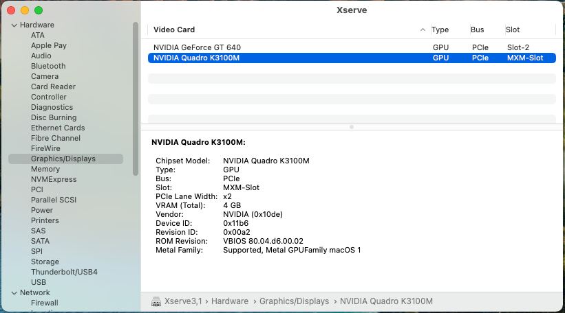 Interesting choice of GPU, it's not as performant as other MXM options and less supported with newer macOS versions.I bought the Quadro K3100M because I wanted to make good use of the mxm slot😏