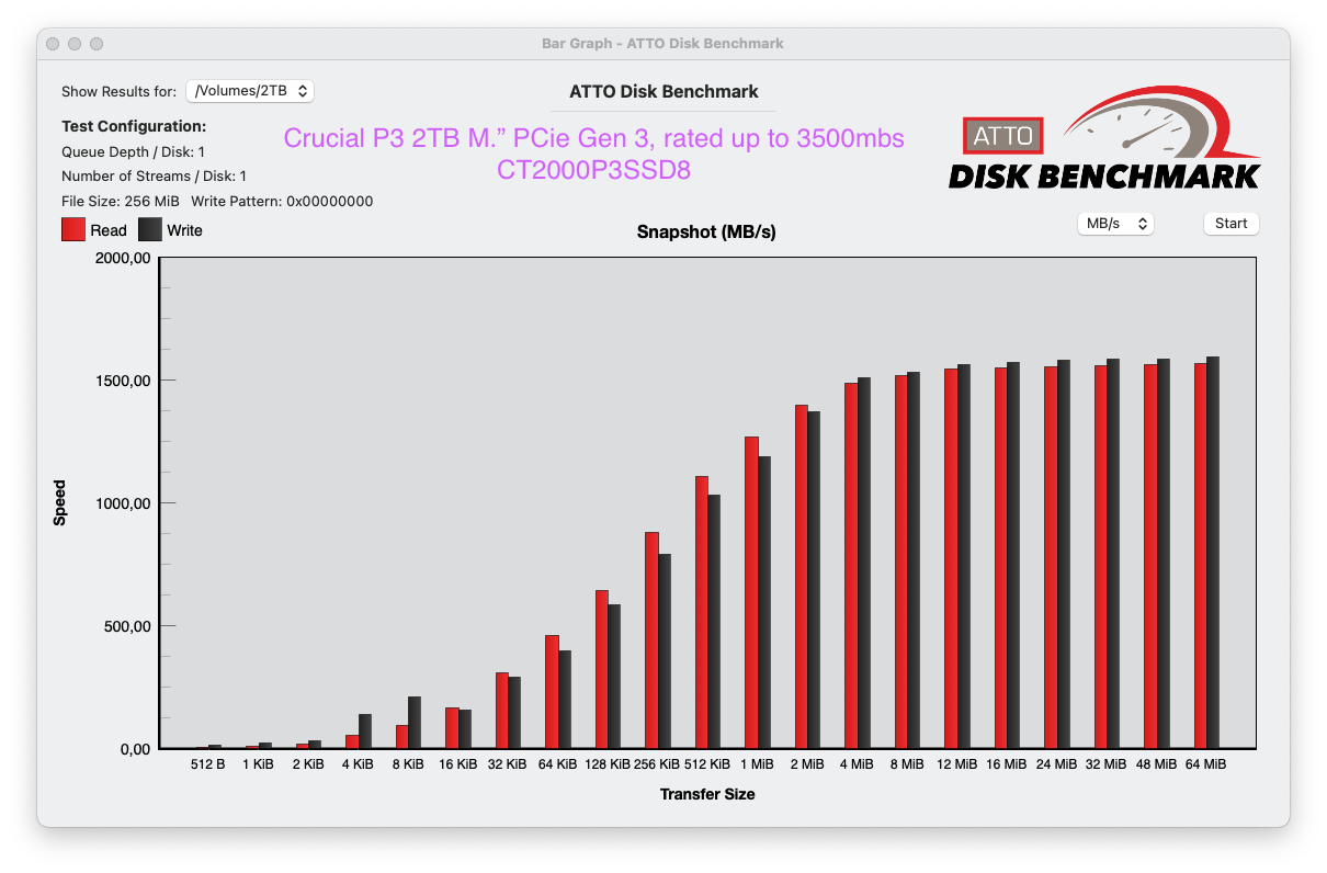 I'm getting around 1500/1600mb/s. currently on my pcie nvme adaptor.