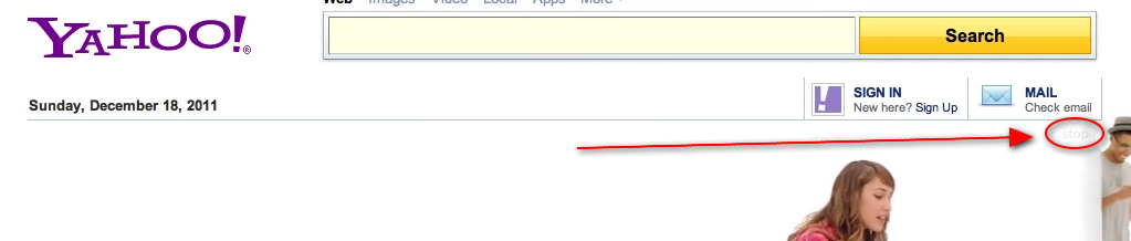 When I pull up Yahoo's frontpage there is an large iPod Ad that won't go away and there is no small box to click on to make it collapse. How do I get rid of it?