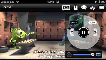 yaPlayer is a video player app for iPhone/iPad with gorgeous control interface (it's like jog dial). It can play most of all video formats like MP4, M4V, MOV, AVI, MKV, WMV, FLV, WEBM, VOB, TS, TP... and supports subtitle, chapters.