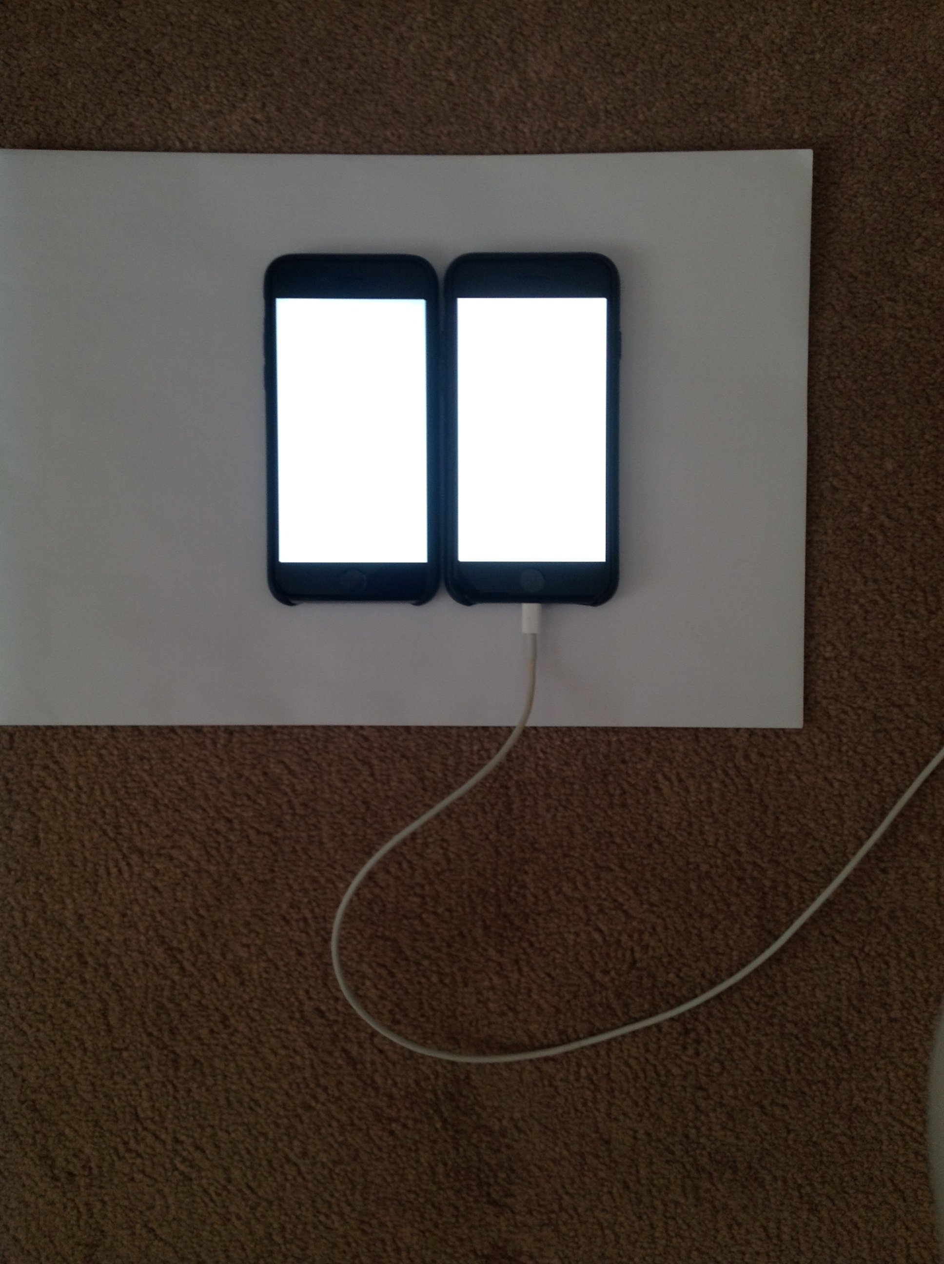 Have you manually calibrated your screen?Crappy photo as its from my iPad 3 but launch day iPhone 6 on the left and launch day iPhone 7 on the right. Both at max brightness with a blank Safari tab. If I'm pushed I'd say that the 6 is fractionally cooler in the flesh (I've always felt that it's been a bit too blue anyway!) but both are pretty equal. I wish I had my OH's launch day 5 to hand as that has a lovely pink rectangle in the middle of the screen now!