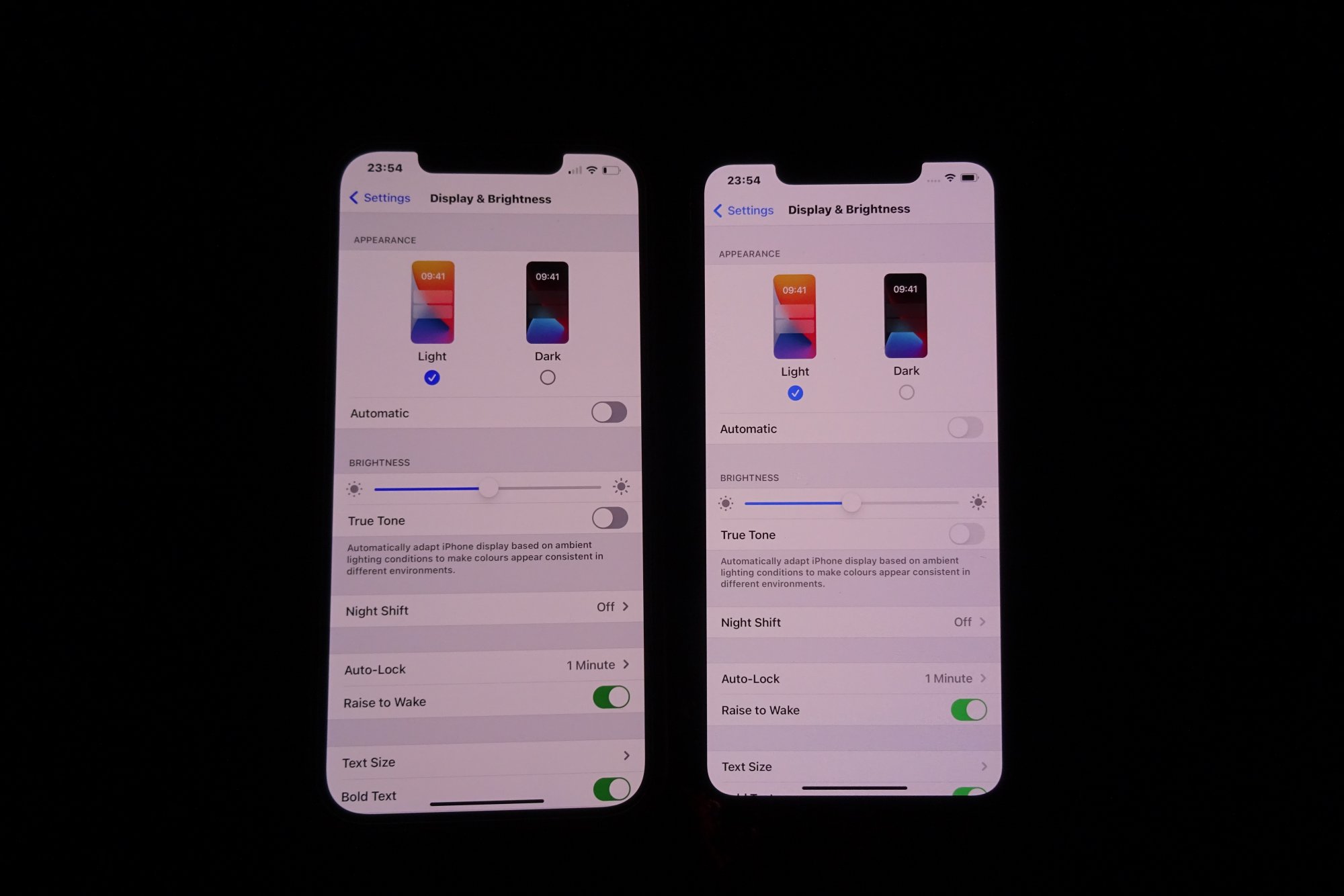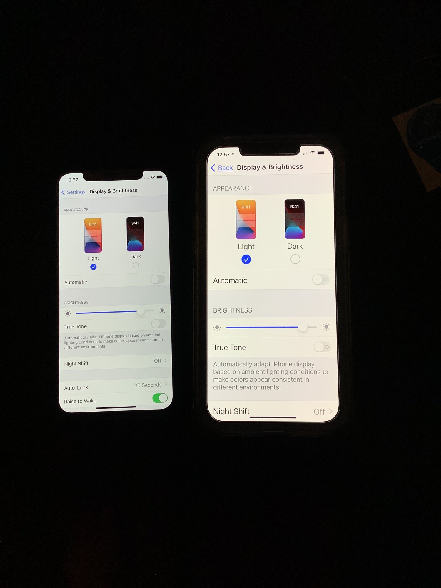 looks very closeSome more pics/evidence for the collention. Serial starts with G0NDL. Brightness at 50% set by Siri. True Tone and night shift off. 12 pro max to the left, XS max to the right.