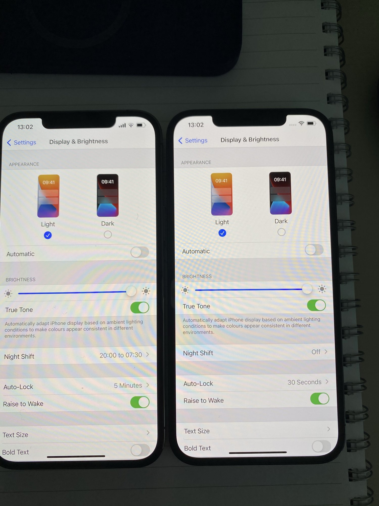 Which screen is better? The left screen flickers more in a dark room playing a black HDR video whereas the right phone only flickers slightly and not as often.