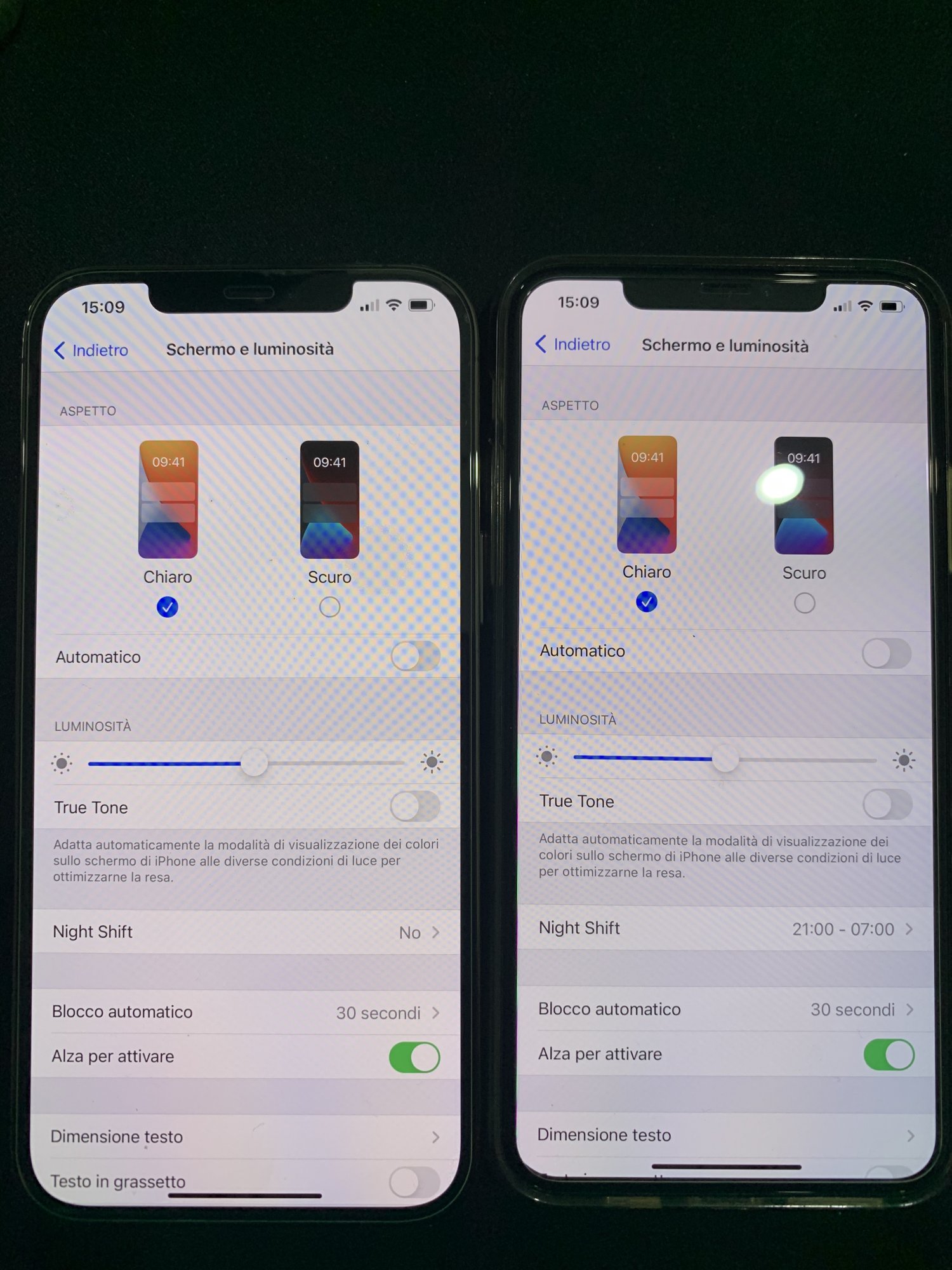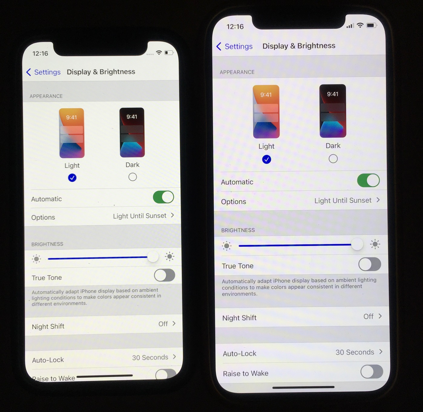 True tone off, auto-brightness off, the displays are virtually indistinguishable (i.e. both yellow). The new one is a tiny bit less bright, almost unnoticeably so. Neither suffers from the raised blacks issue.