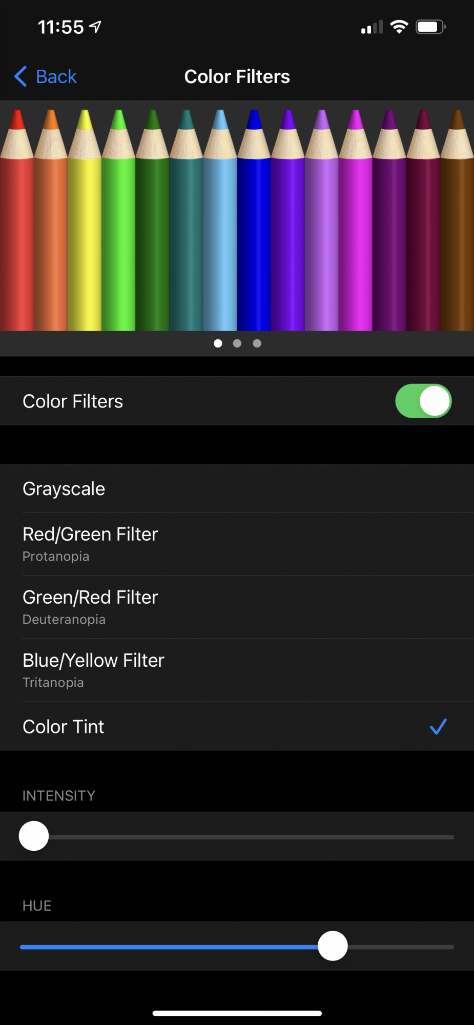 There is a tint feature if you put it to 70% in the blue hue it will look better than previous iPhones and the white's pop more.