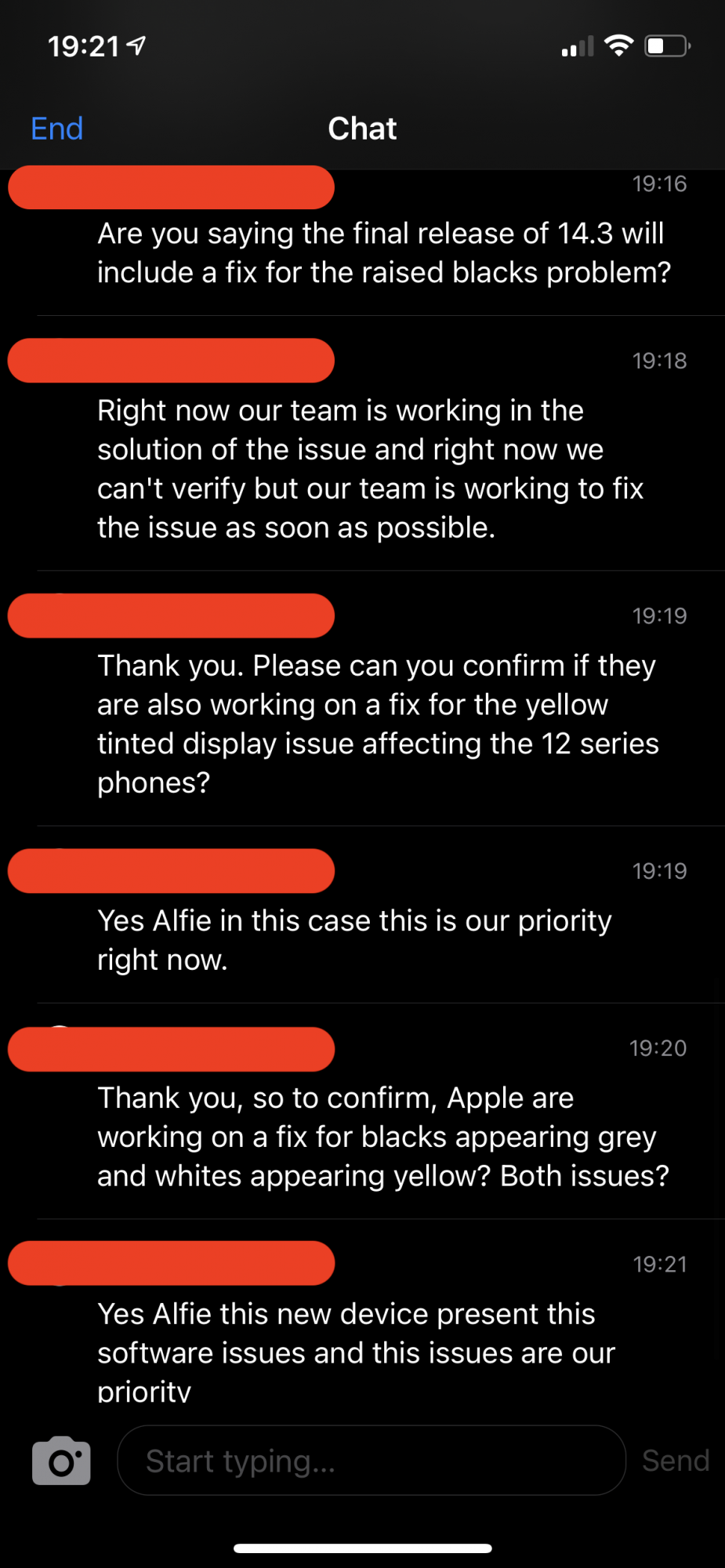Hmmm, I’m not convinced. Looks to me like they’re just telling you what you want to hear. At least you’ve taken screenshots of the conversation, so if the issue isn’t fixed you can use this as evidence to make a case for a replacement if it comes to that.This is following a conversation about the 14.3 RC not resolving the raised blacks issue. I even double checked for clarity on the yellow tint point, mainly for you guys. Could be legit...