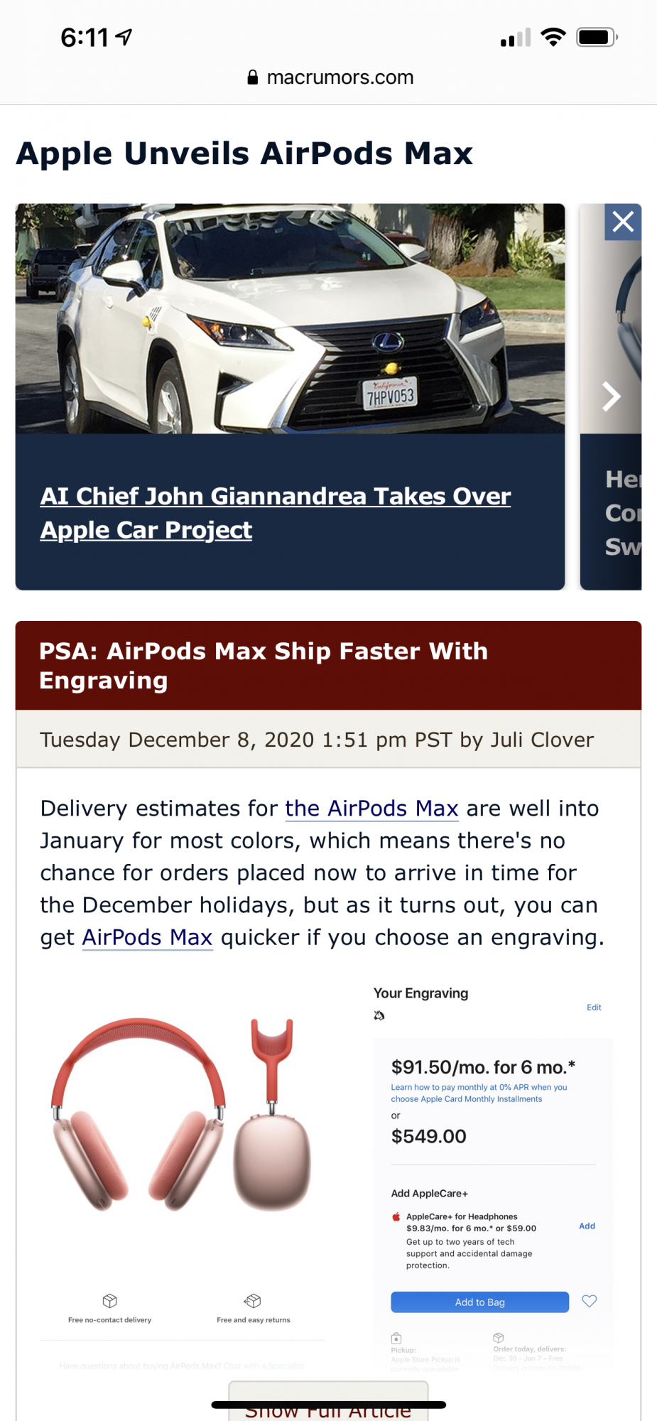 Not out of my return period. I've got AppleCare anyway. I want to just do a swap, but I'll have to call them and discuss that after work.Yeah, go for it. Are you out of your return period and doing a swap or doing a return and buying a new one?
