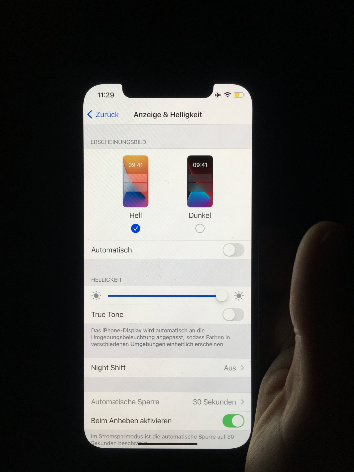 So I choose the black background from iphone 12pro, then i took a screenshot, cut the middle to get a pure black image. if i open this on the iphone 12pro with a brightness under 50% it starts to glow green,