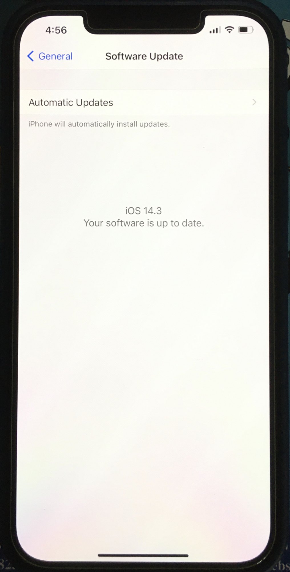 12 mini vs 11 regular at max brightness - white image. Sorry about quality as I had to use an older phone to capture it - but the color is on point.