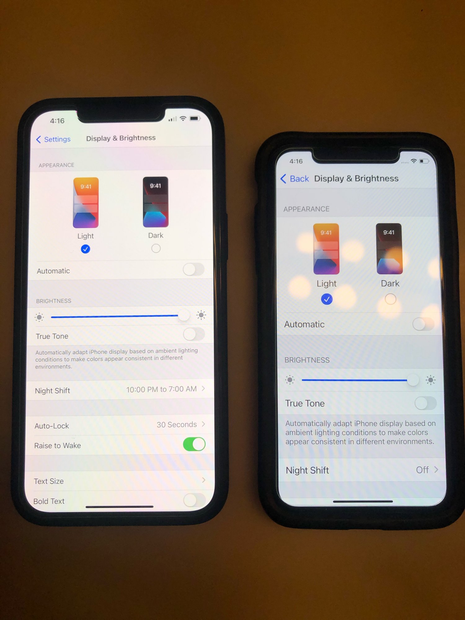 People in this forum are often saying that the screens are "too warm", but in my opinion, this is not the case. They have a YELLOW tint. On the iPhone X of my GF, I can turn True Tone and Night Mode on and it will get very warm, but NOT Yellow. 12 Pro Max on the other side, has a yellow tint.