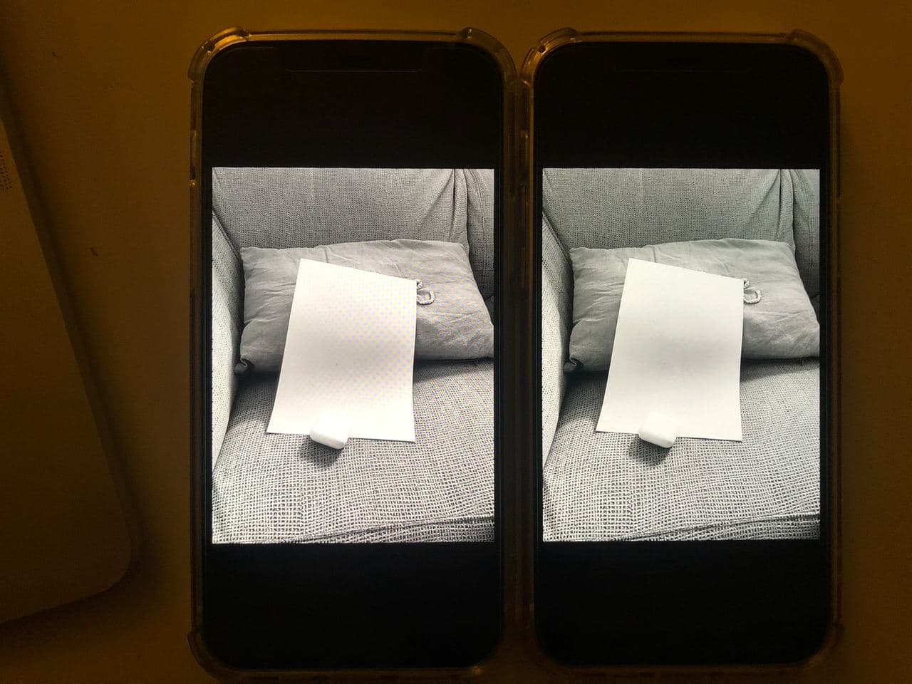 If you have time can you check if the new one which has less color shift off axis has worse black smearing?I think it's just the photo, the left (new) one is on the MagSafe charger so it's a bit raised up and closer to the camera by a small bit.