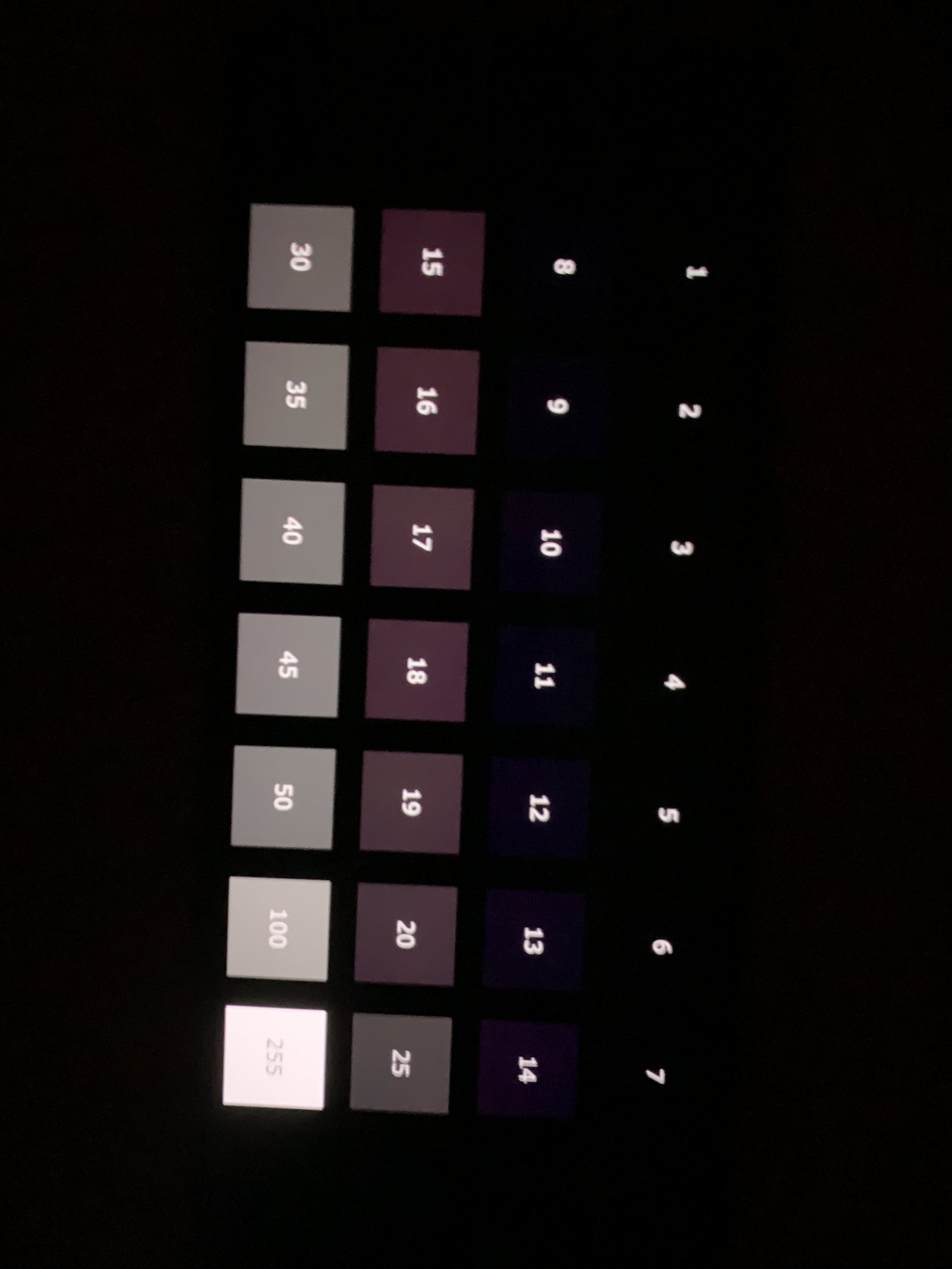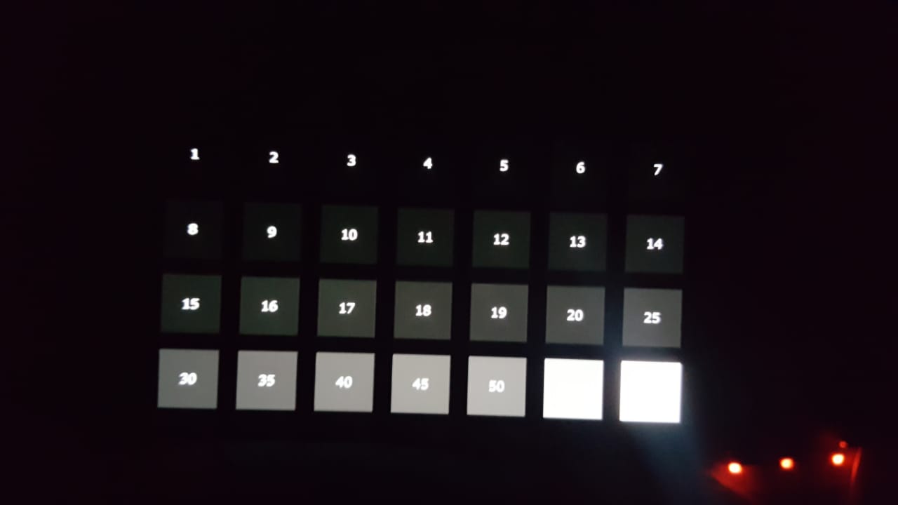 Can you elaborate more on what we need to do please.Watch the attached video in a dark room and reduce your brightness to zero. What color do the brightest keys on the video show up as?