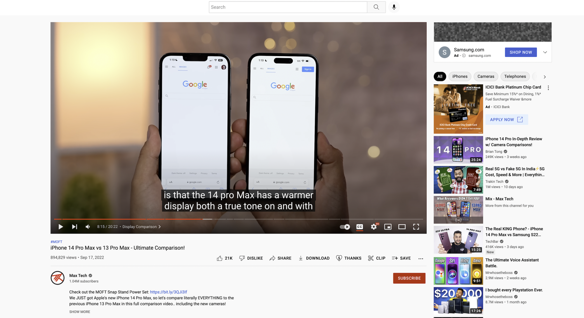 I can conclude that iPhone 14PM is calibrated on warmer side. Check here after 8:13 mins onward, the host has same observations.