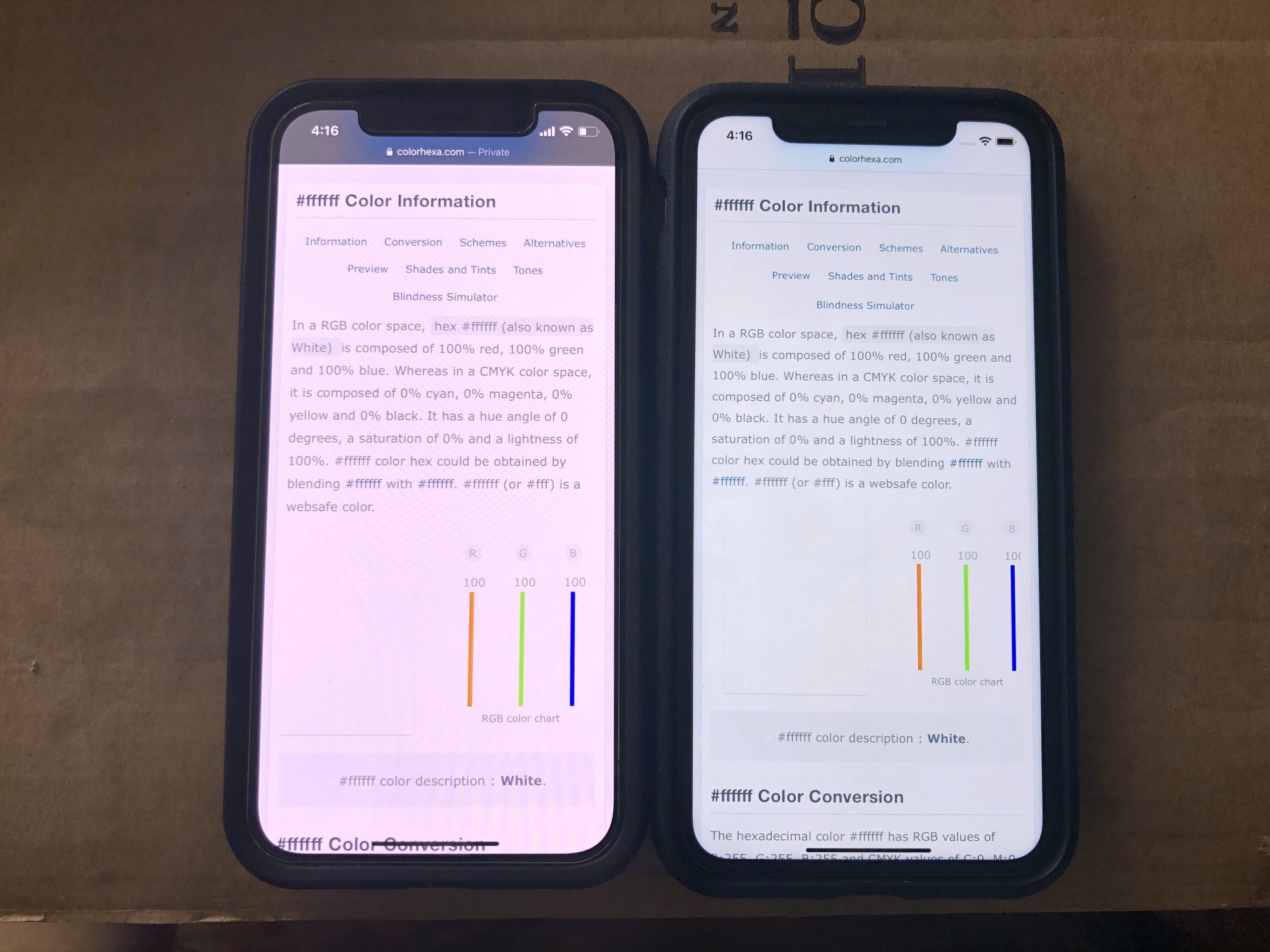 This display is not “slightly warmer” it is straight up jaundiced, ugly piss yellow. Here’s a picture next to my iPhone 11, first photo is true tone off for both, second is true tone on for both. I tried my best to edit the pictures to match my 11’s screen color temp, and for some reason the camera picks up a reddish pink more than yellow on the 12, but the intensity of the color difference is pretty obvious.