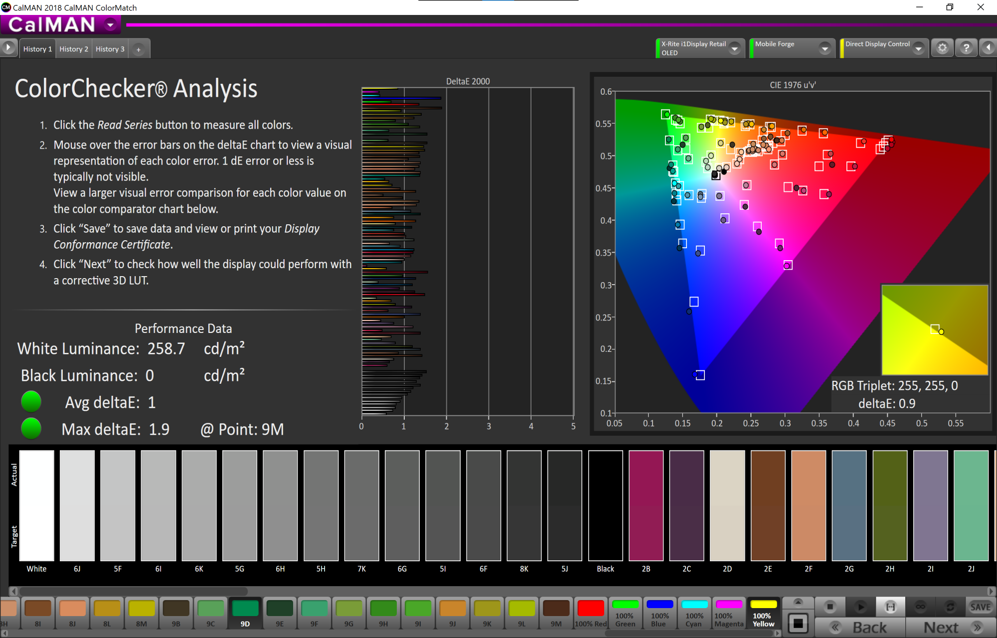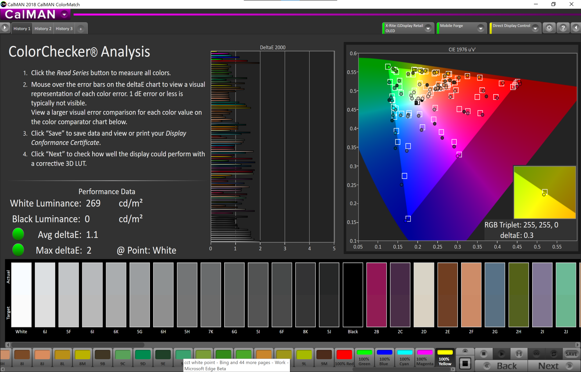 My 12PM measured 6520k with an avg ΔE 1, max ΔE 1.9. We can see the grays on the 12PM have greater ΔE, especially the dark grays, compared with the 11PM ΔE around the same color bands. This lines up with the slight tinge, especially when dark. So no, you aern't crazy if you see this. But overall, the 12PM display maybe appears slightly more even in regards to ΔE across the board compared to 11PM?