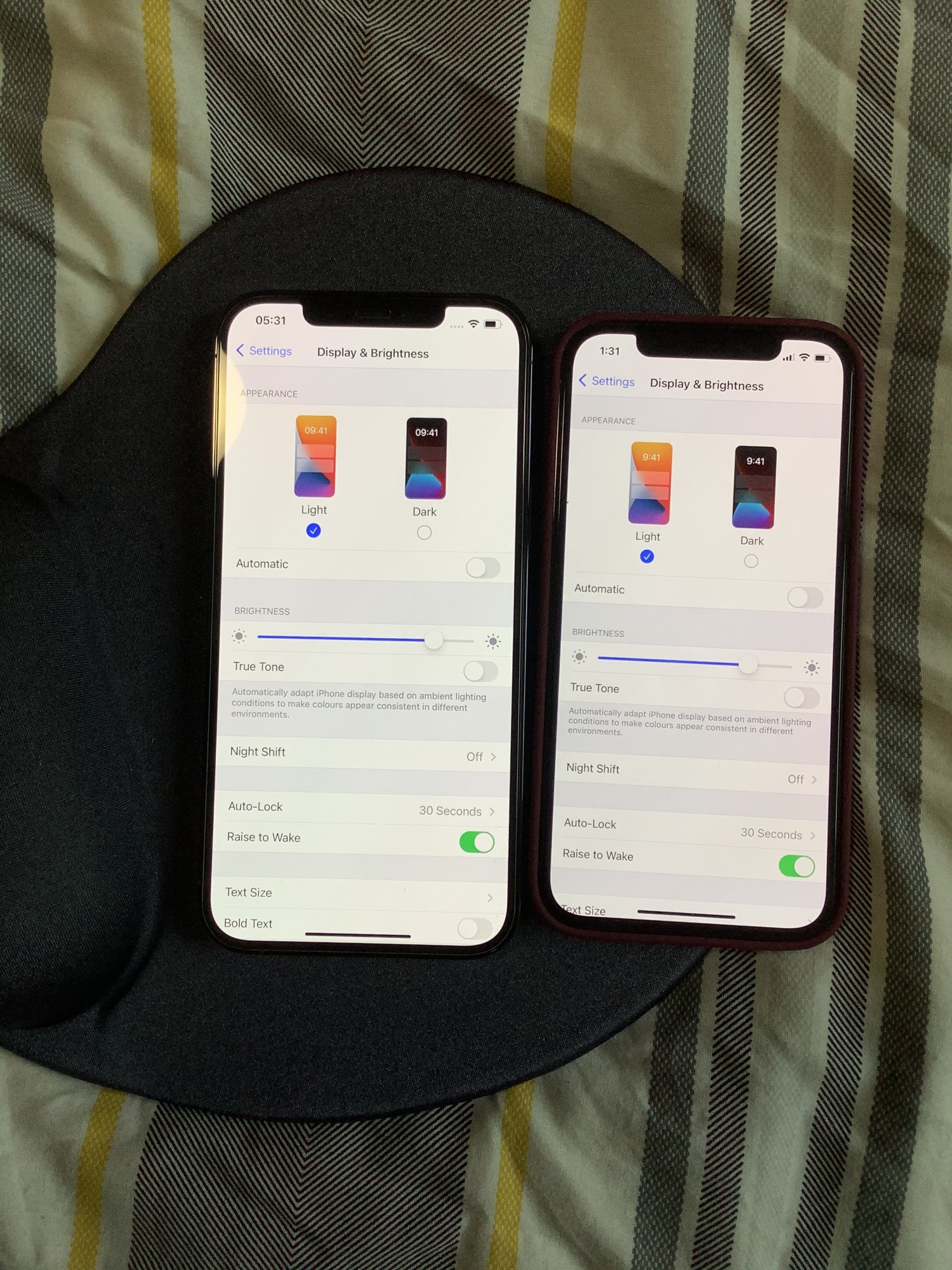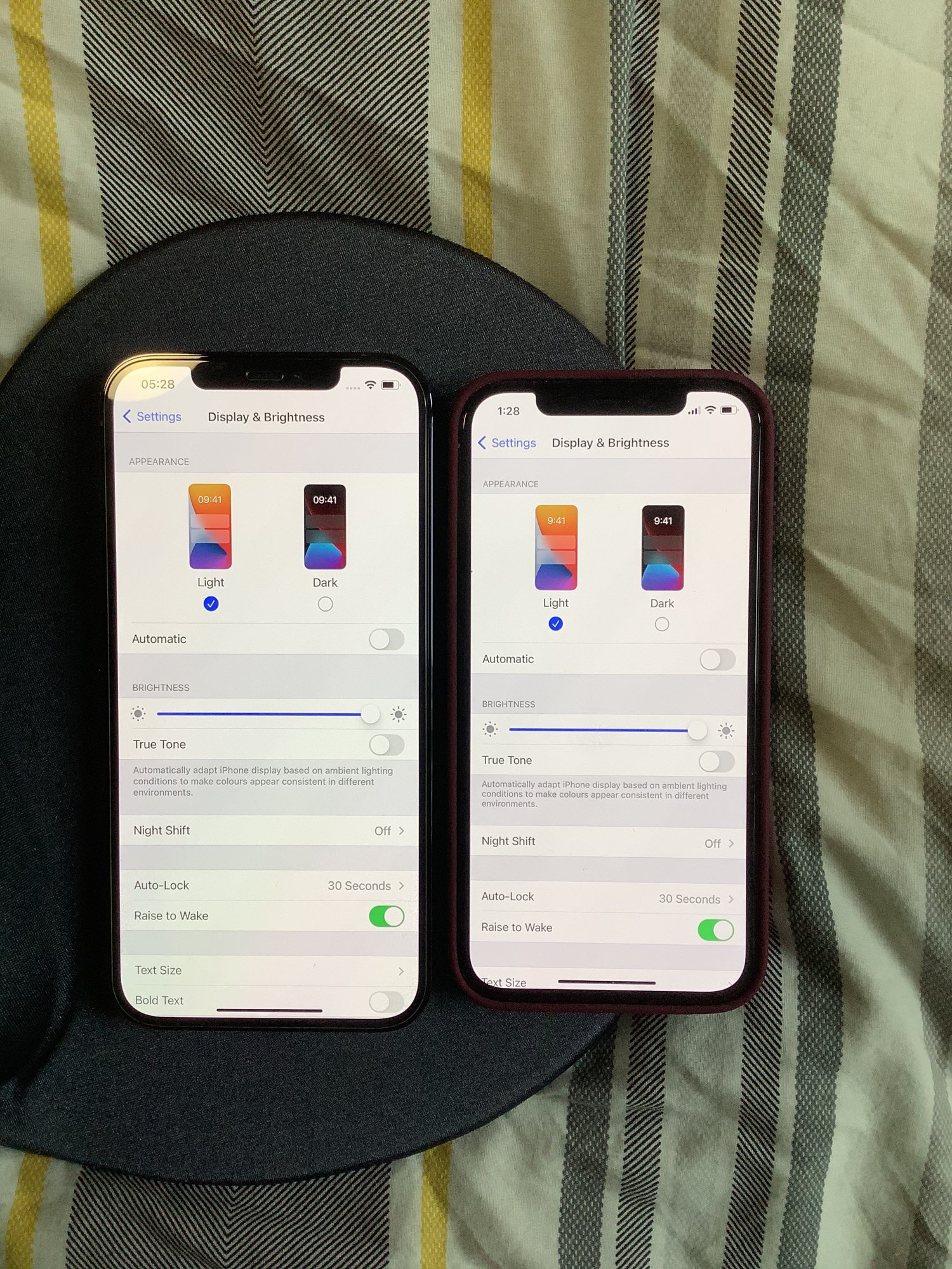 So this reflects the slightly warmer tone the 12PM has for me, but I found both phones to have surprisingly tight calibration from the factory. Don't forget to disable night-shift as I forgot the first time and it also made a difference.