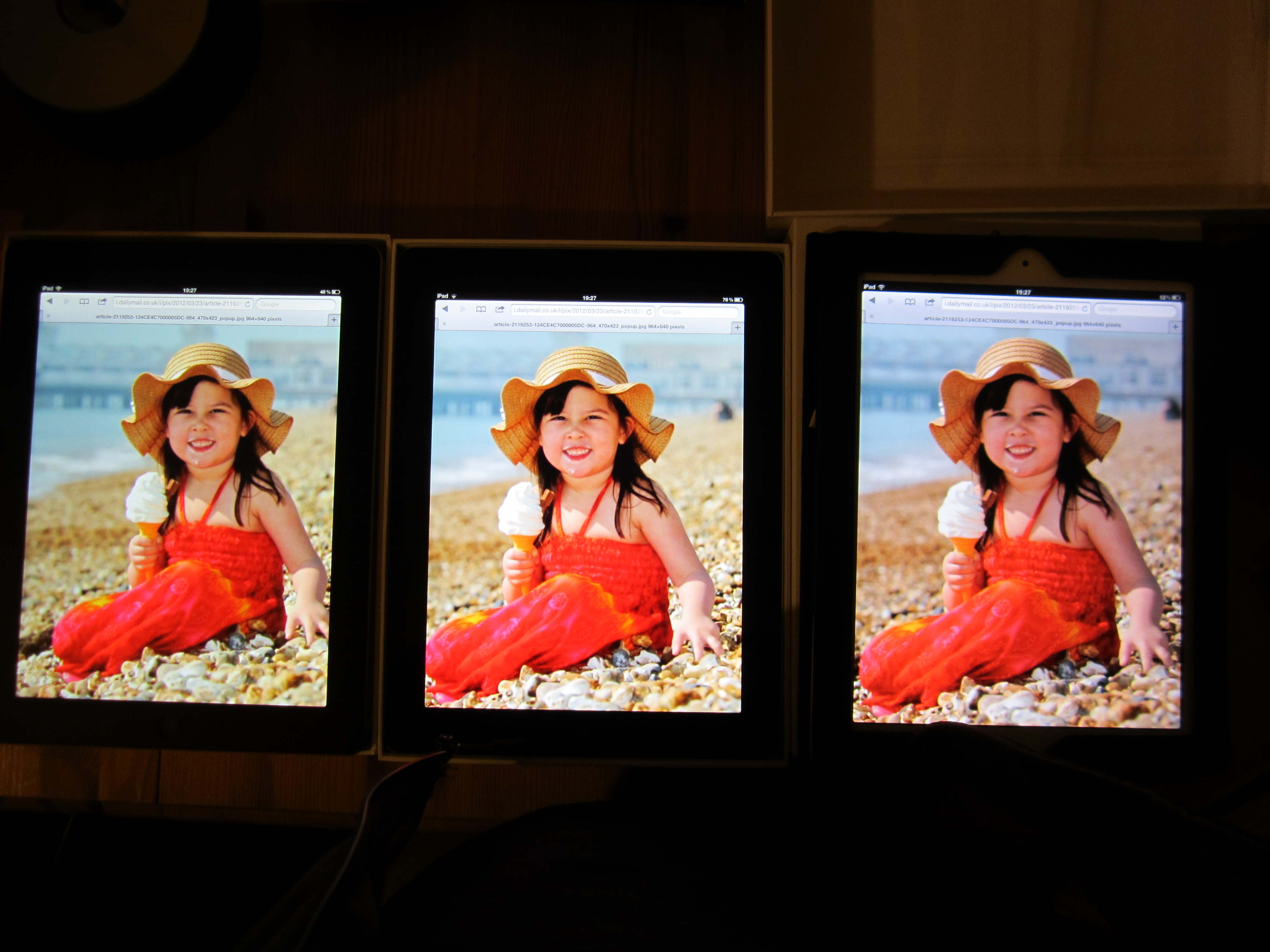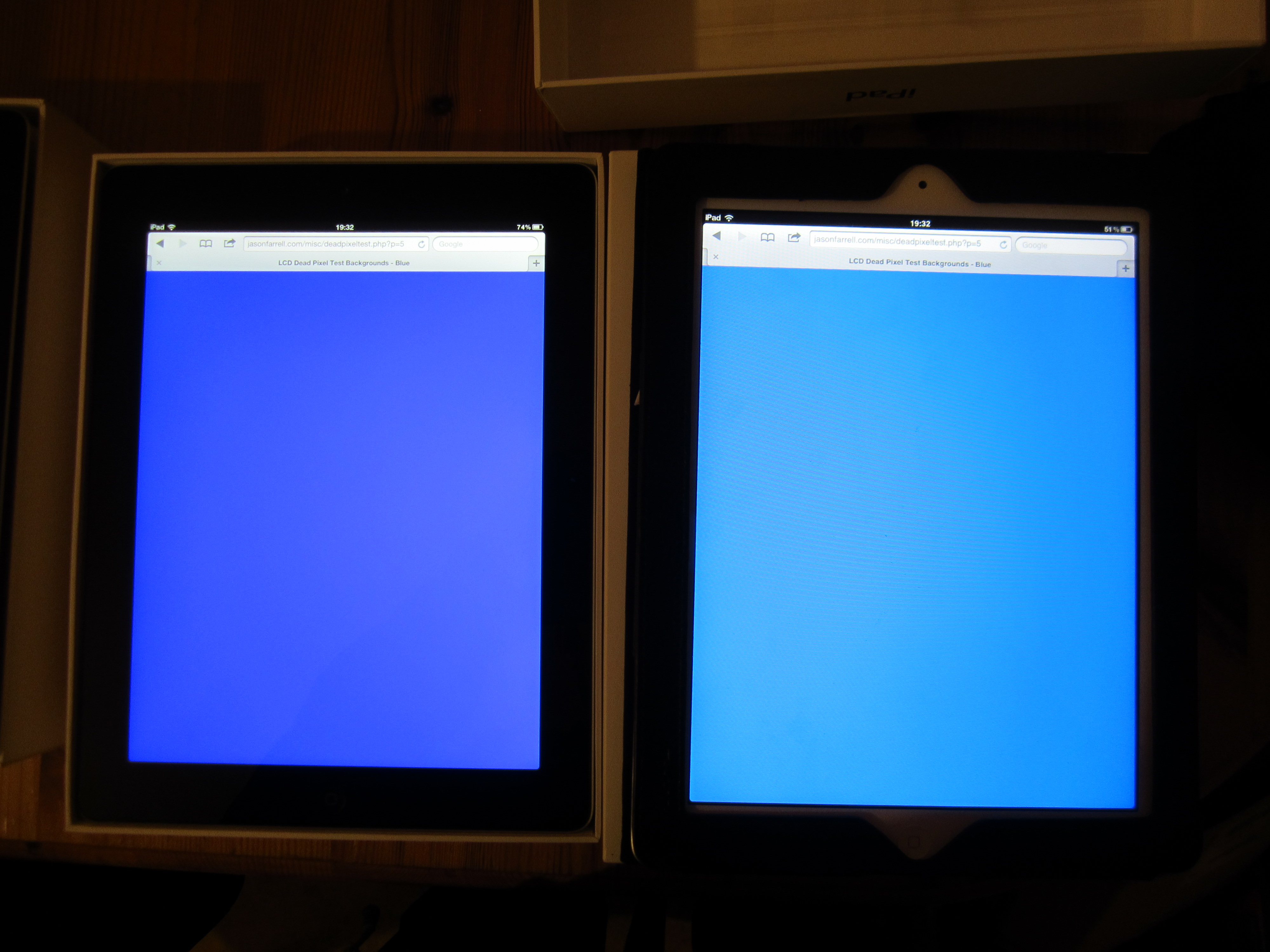 (3rd pic) -- On the left is iPad from Apple online store, in the middle is iPad from Amazon, on the right is iPad 2